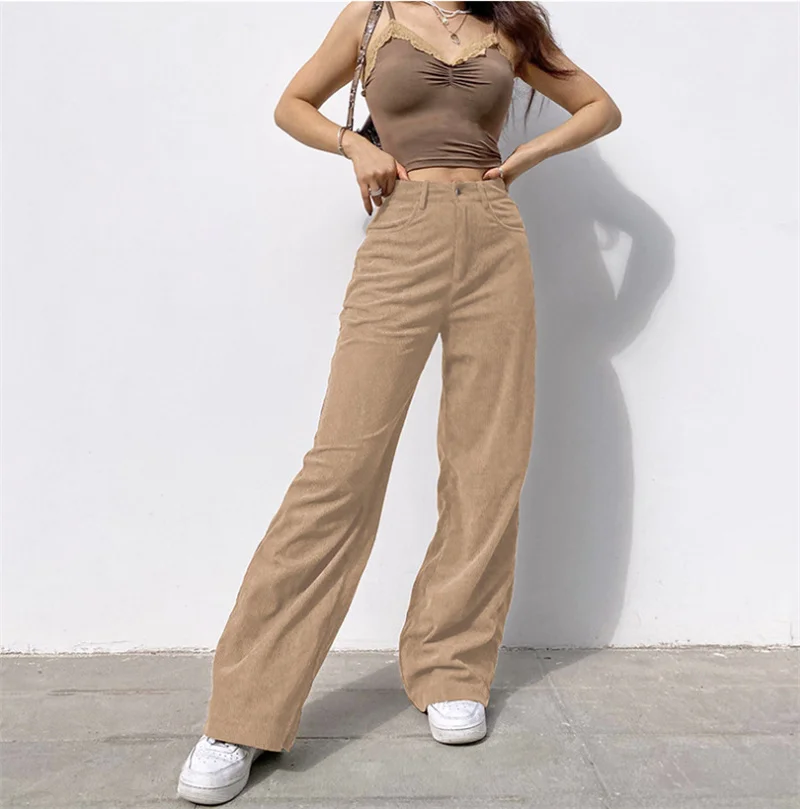 Супер-светильник в стиле ретро; Вельветовые Слаксы; Коричневые широкие брюки; Лидер продаж 2021 года; Сезон весна-осень; Уличные стильные удобные офисные женские брюки