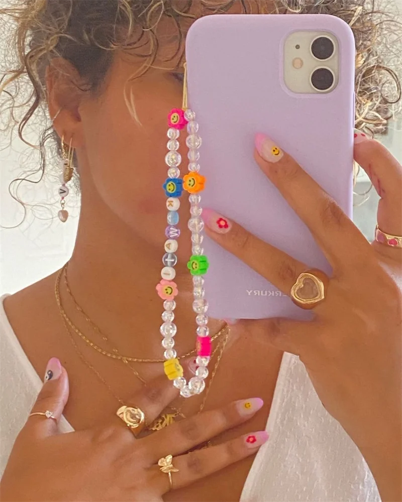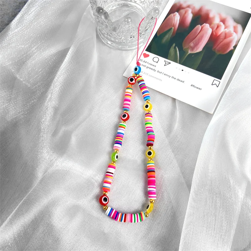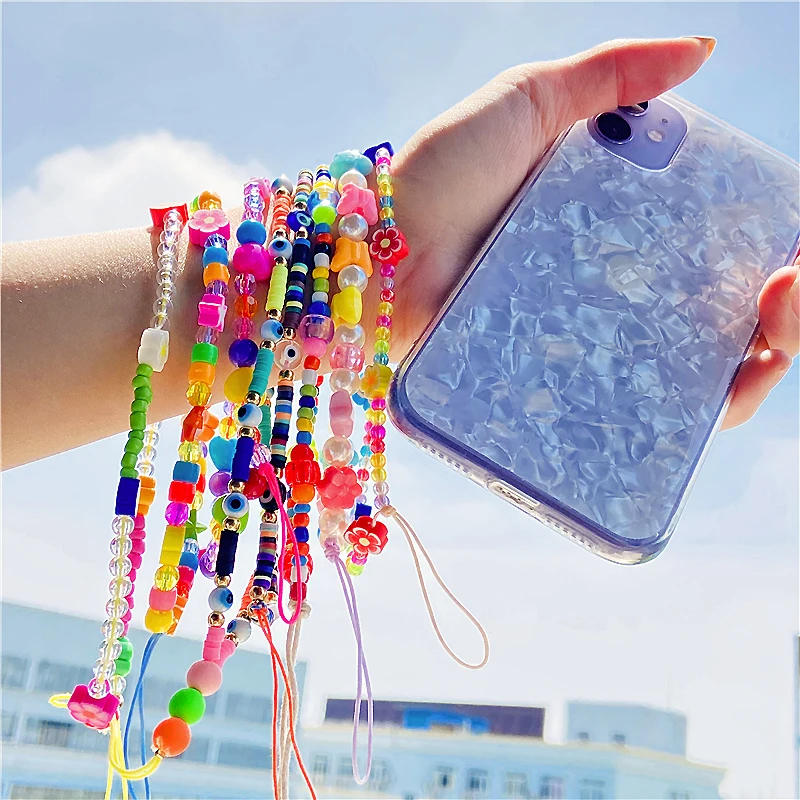 Расшиты разноцветными бусинами Сумки для телефона на цепи, Ins модный диск бусины с украшением в виде кристаллов мобильный телефон анти-потерянный ремешок для 2021, женская обувь новые летние ювелирные изделия