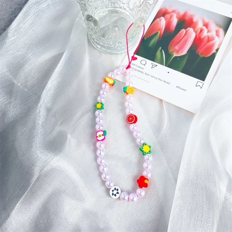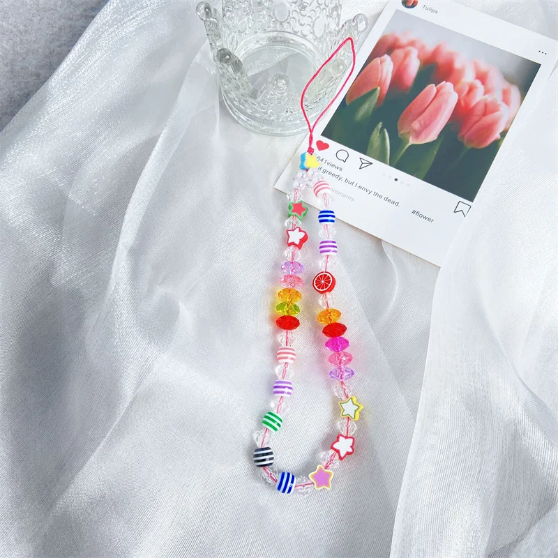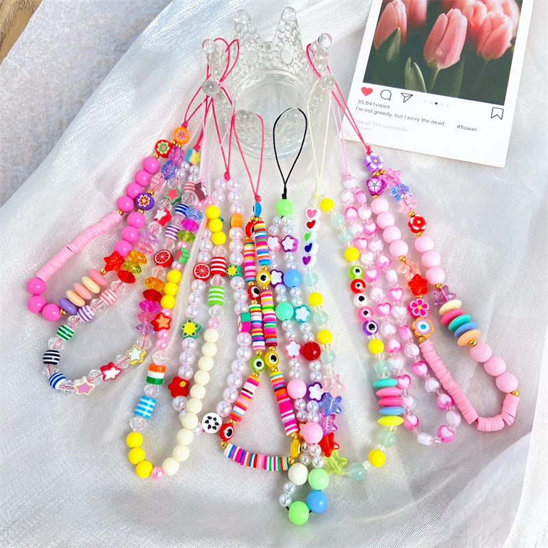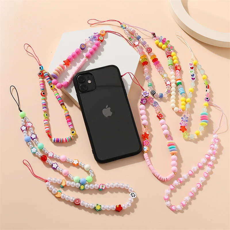 Шнурок-цепочка Женский, с акриловыми бусинами, мобильный телефон