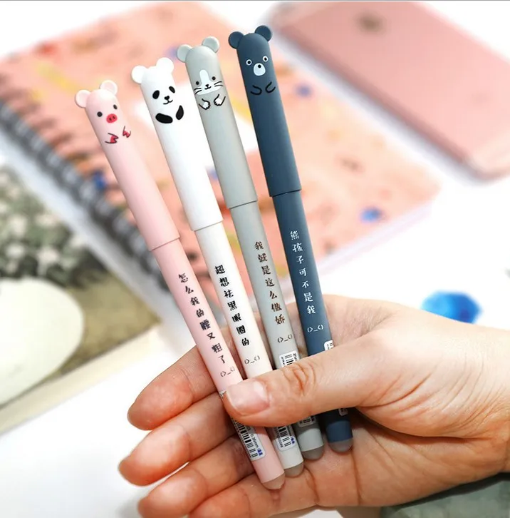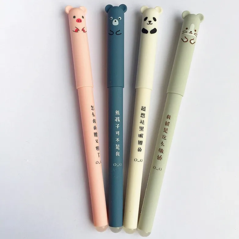 4 шт.лот милые ручки Мультяшные животные стираемая ручка 0,35 мм ст...