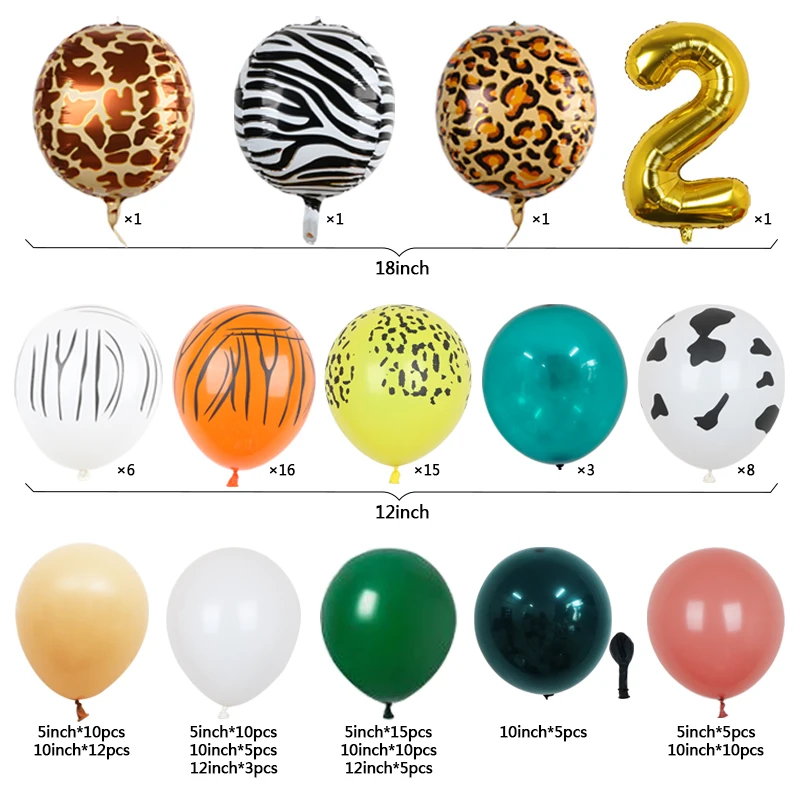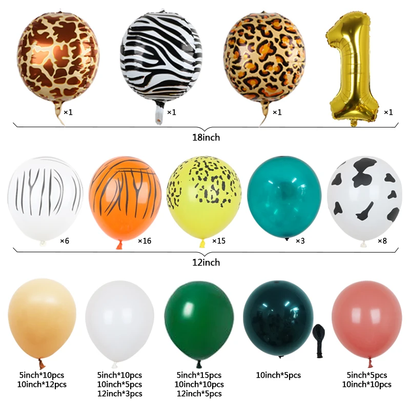Воздушный шар в виде животных в джунглях, 144, 32 дюйма, комплект гирлянды шт.