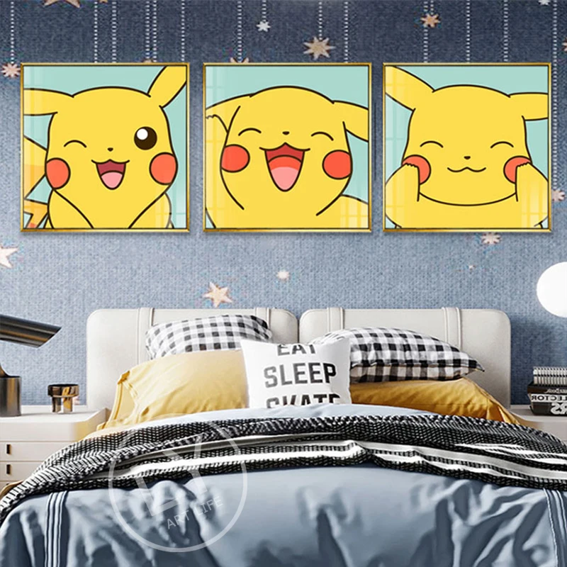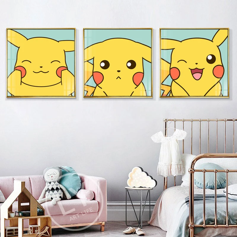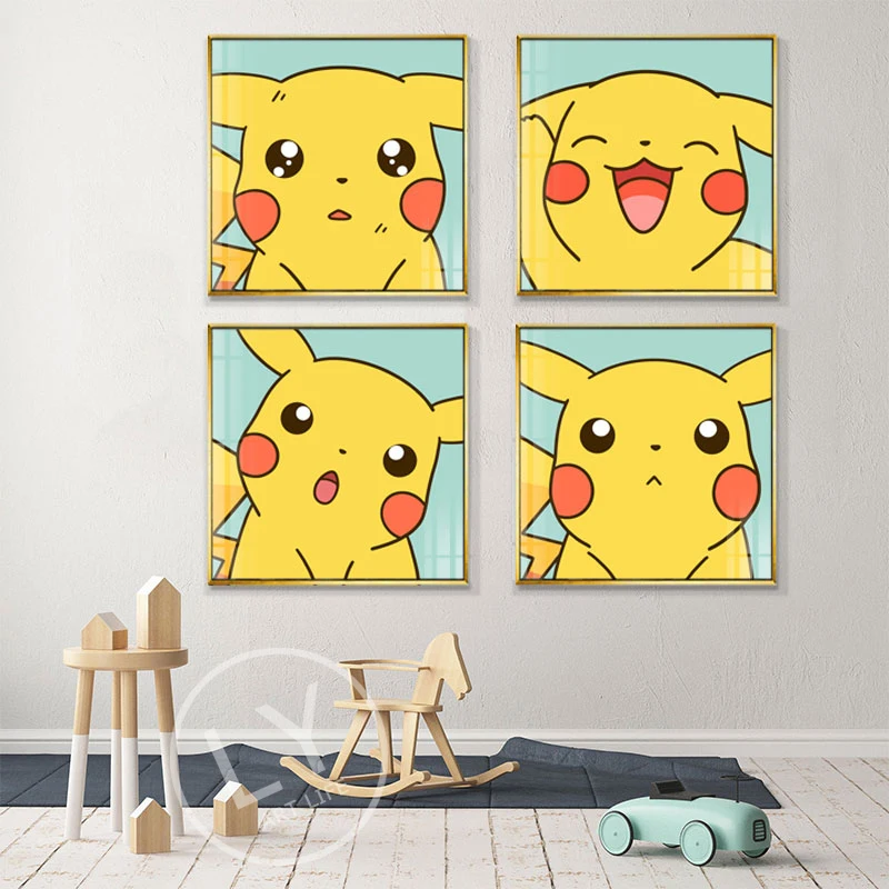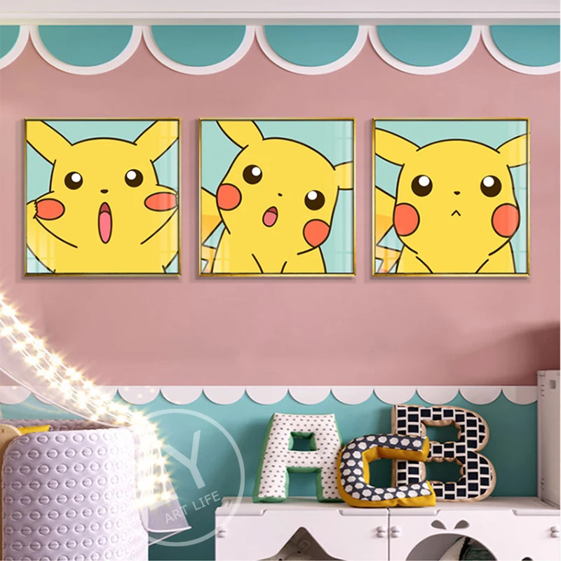 Покемон, аниме, мультфильм, холст, Настенная картина плакат, Пикачу, детская живопись, Скандинавская картина, декор детской спальни