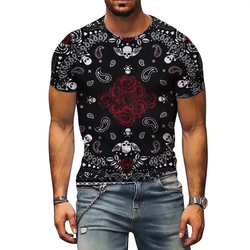 Новинка лета 2022, футболка с 3D-принтом черепа, мужская повседневн...