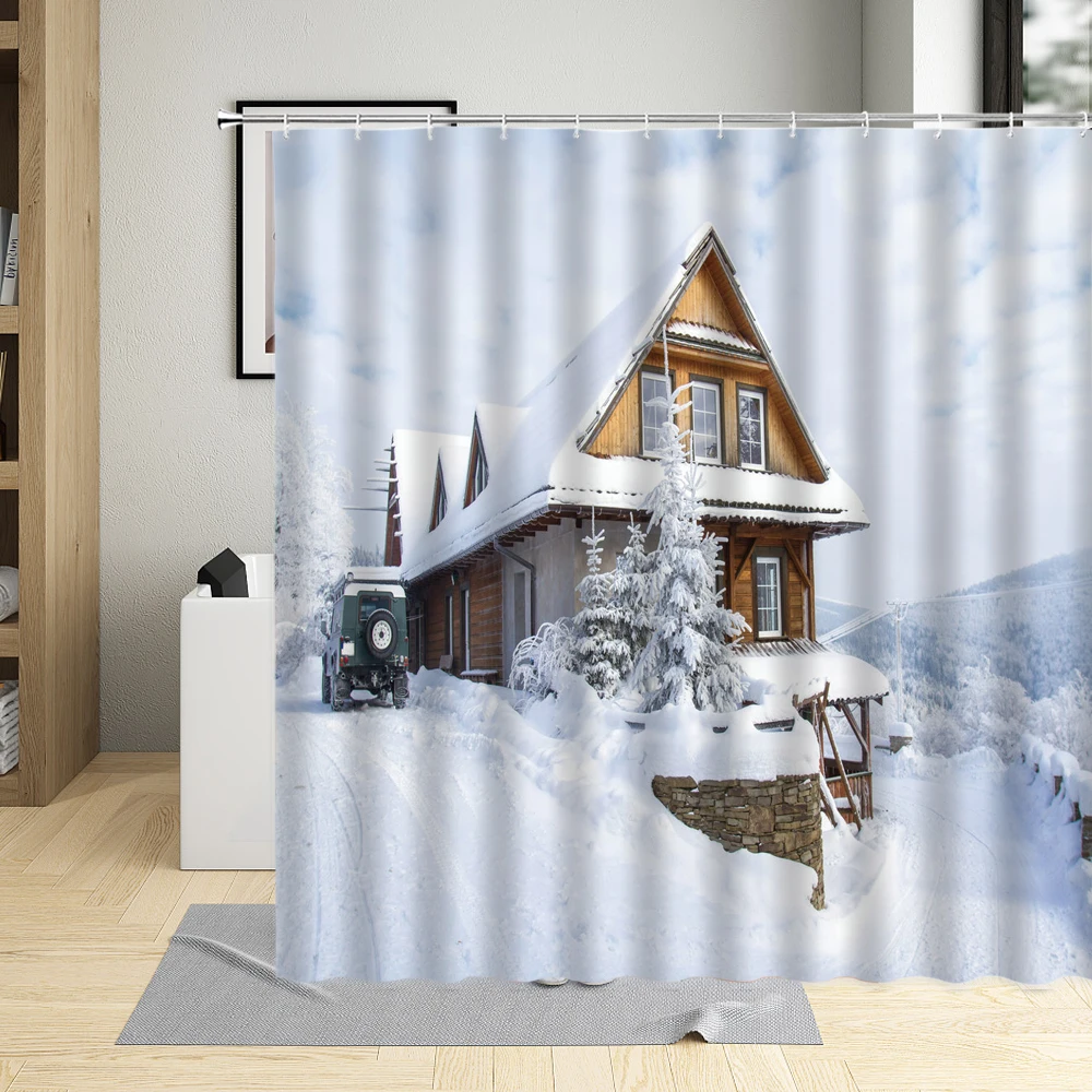 Зимняя душевая занавеска в комплекте, лес, пейзаж, дерево, багажник...