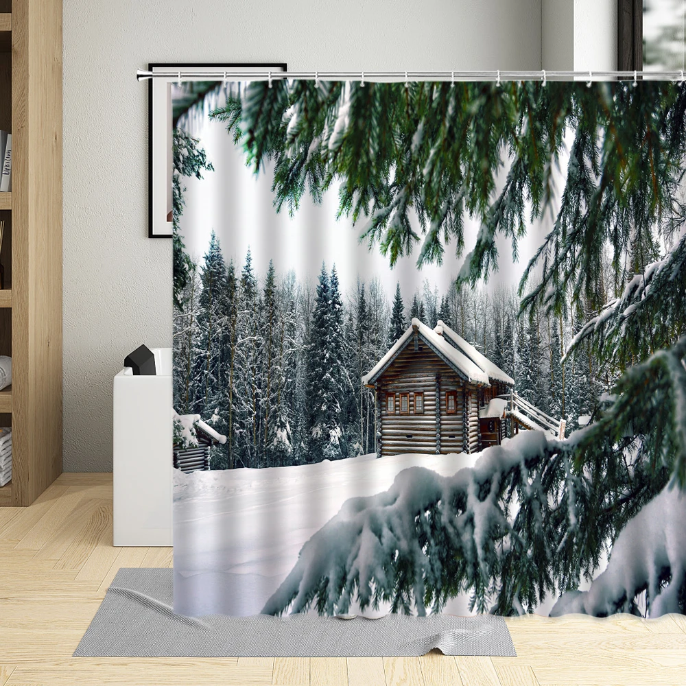 Зимний лес, рождественские занавески для душа, зеленая Рождественск...