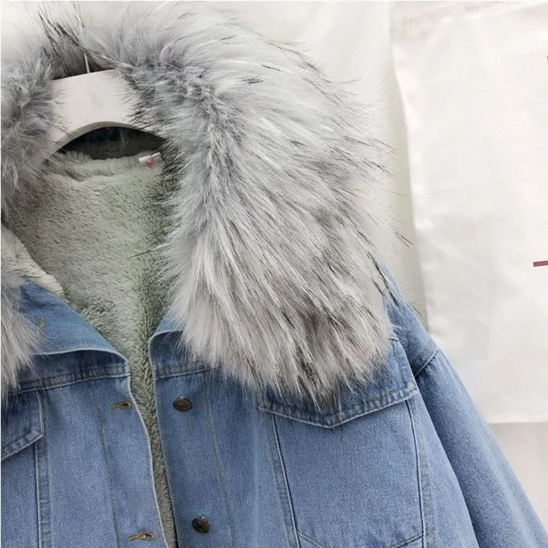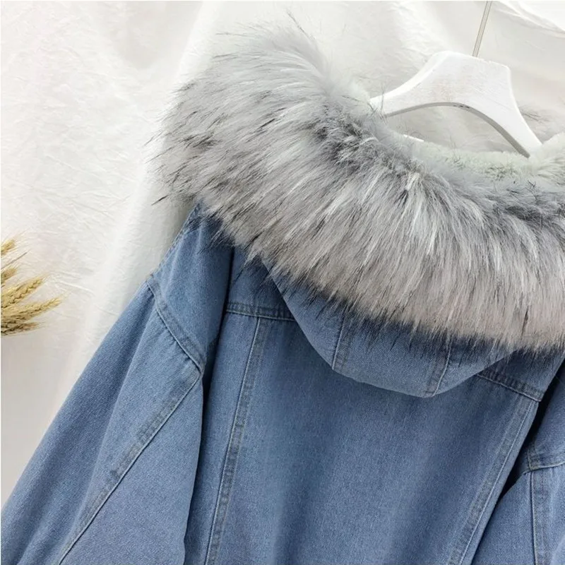 Новинка 2020, теплая зимняя куртка, женское осеннее пальто с капюшоном и воротником из искусственного меха, женские джинсы, бархатные толстые джинсовые куртки, женские свободные пальто