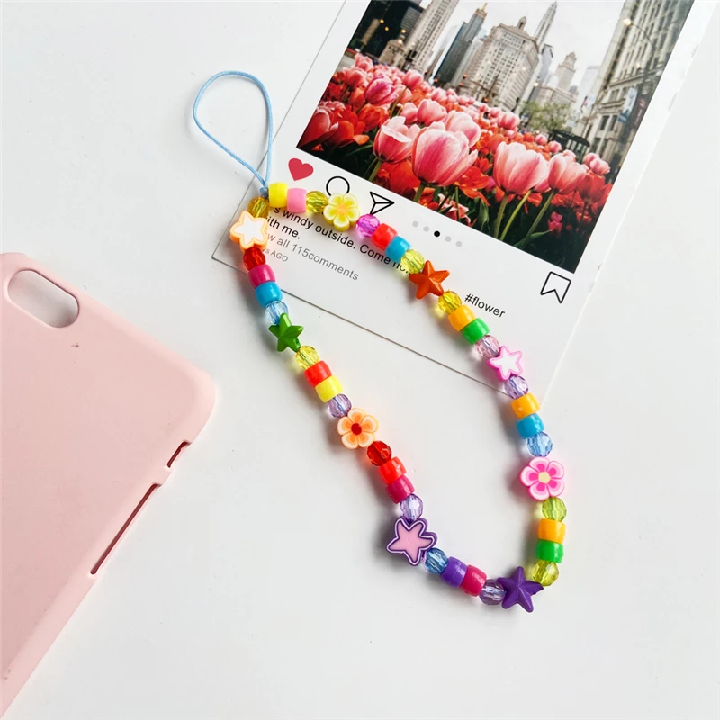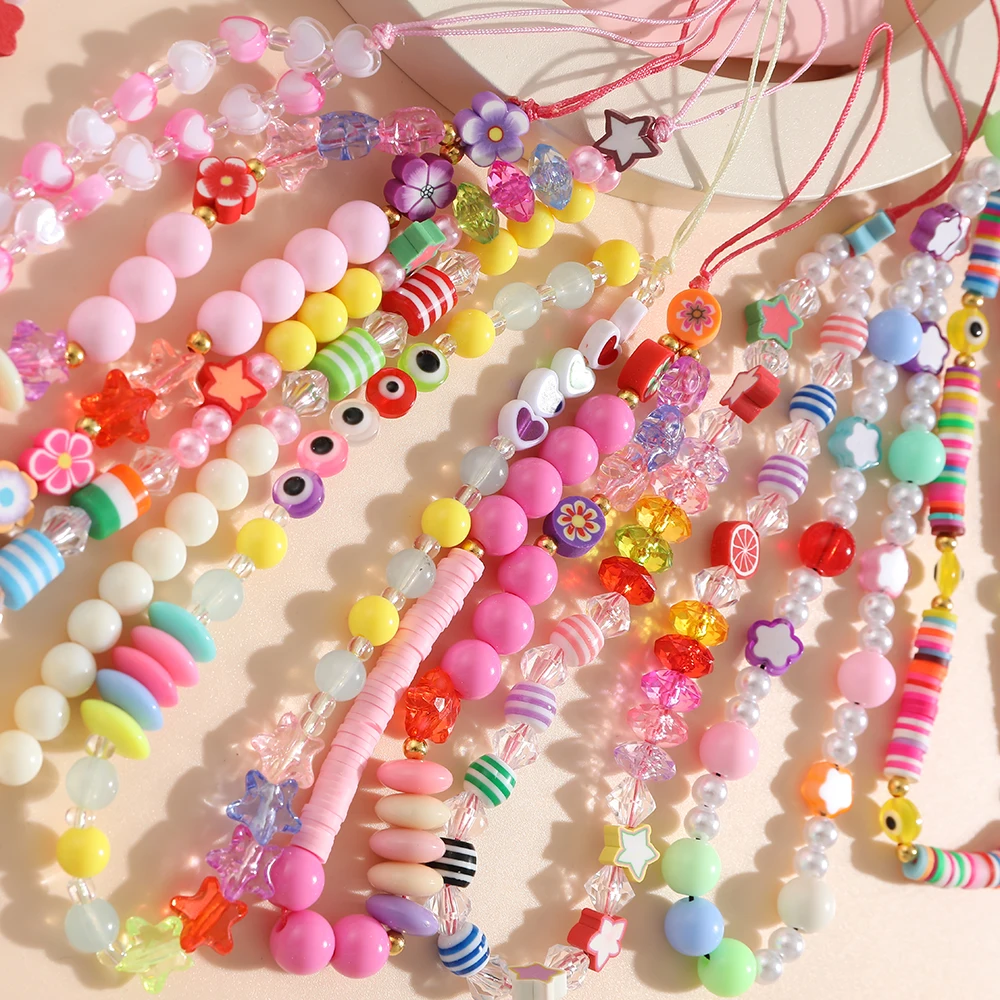 Модные модные цветные акриловые бусины ремешок на цепочке для мобил...
