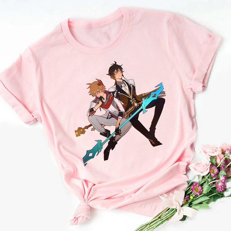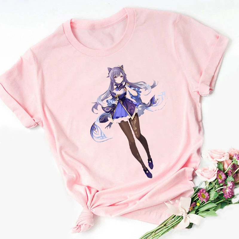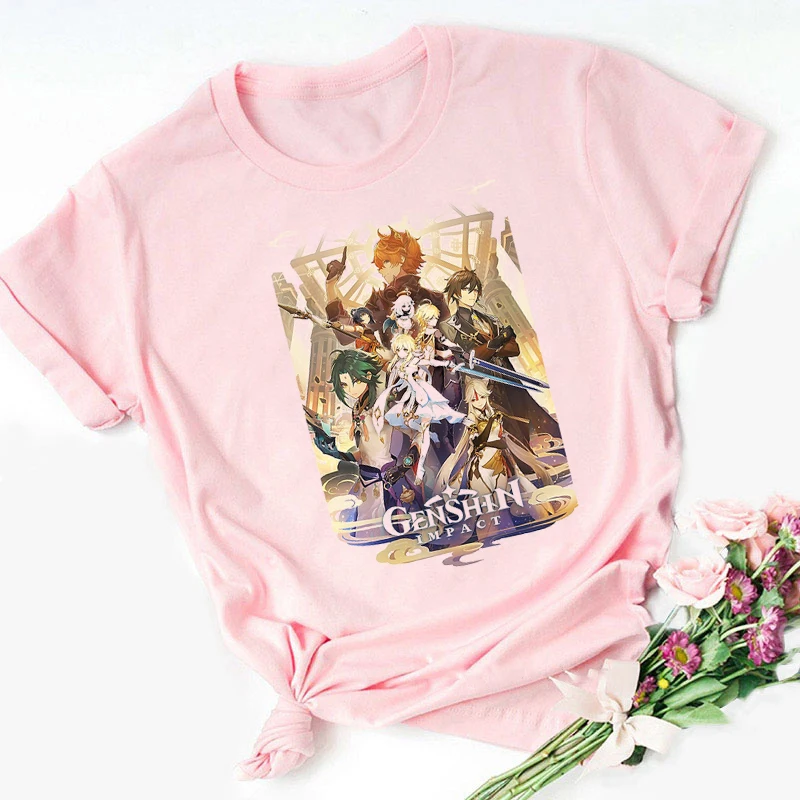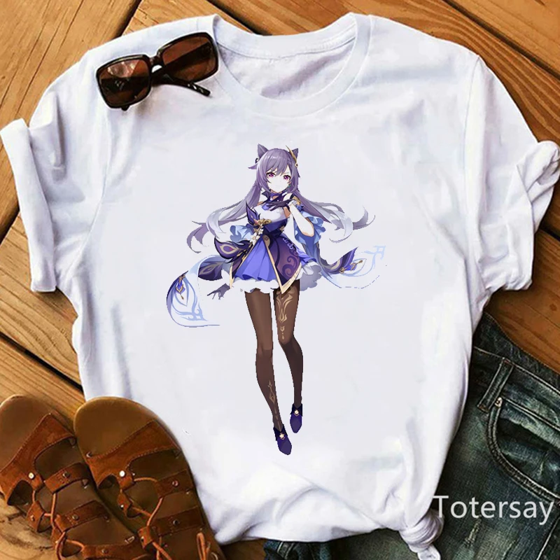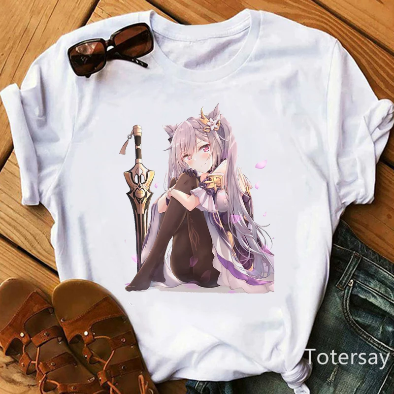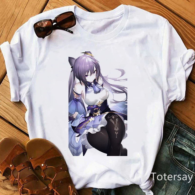 Женская футболка с принтом Genshin Impact, кавайная футболка с изоб...