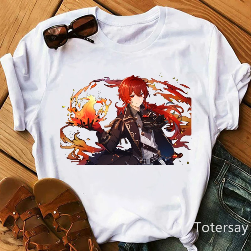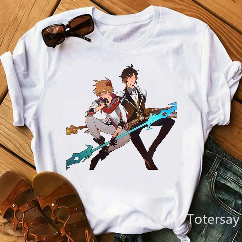 2021 забавная футболка Genshin Impact, детская одежда с мультяшным принтом из аниме, детская одежда, футболка, топ с коротким рукавом в стиле Харадзюку