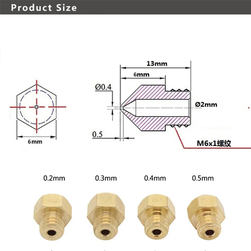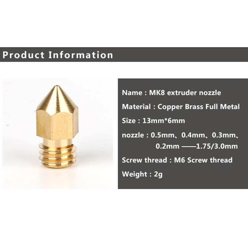 24 шт., латунные насадки для экструдера, 1,75 мм