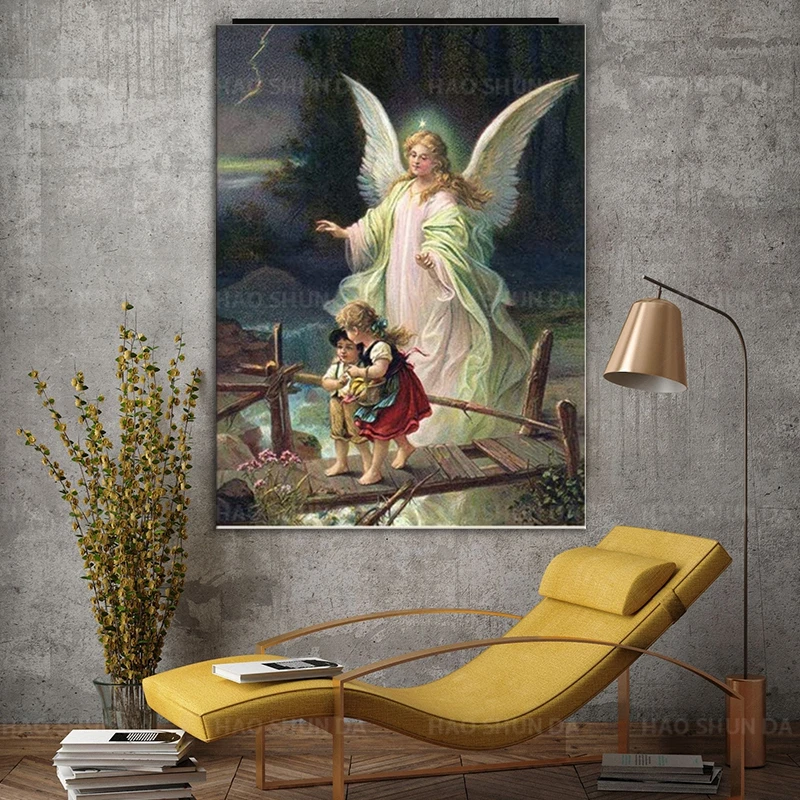 Изображение ангела-хранителя с детьми, винтажный художественный постер, Картина на холсте, hd печать, Настенная картина для домашнего декора, рамка, художественная картина