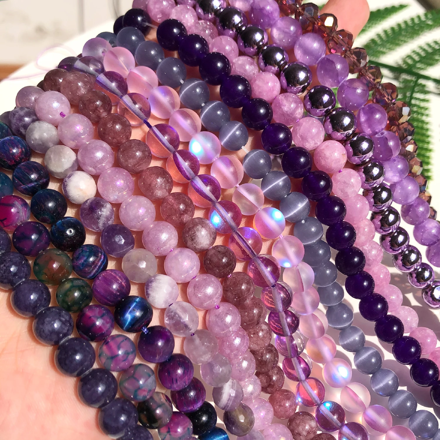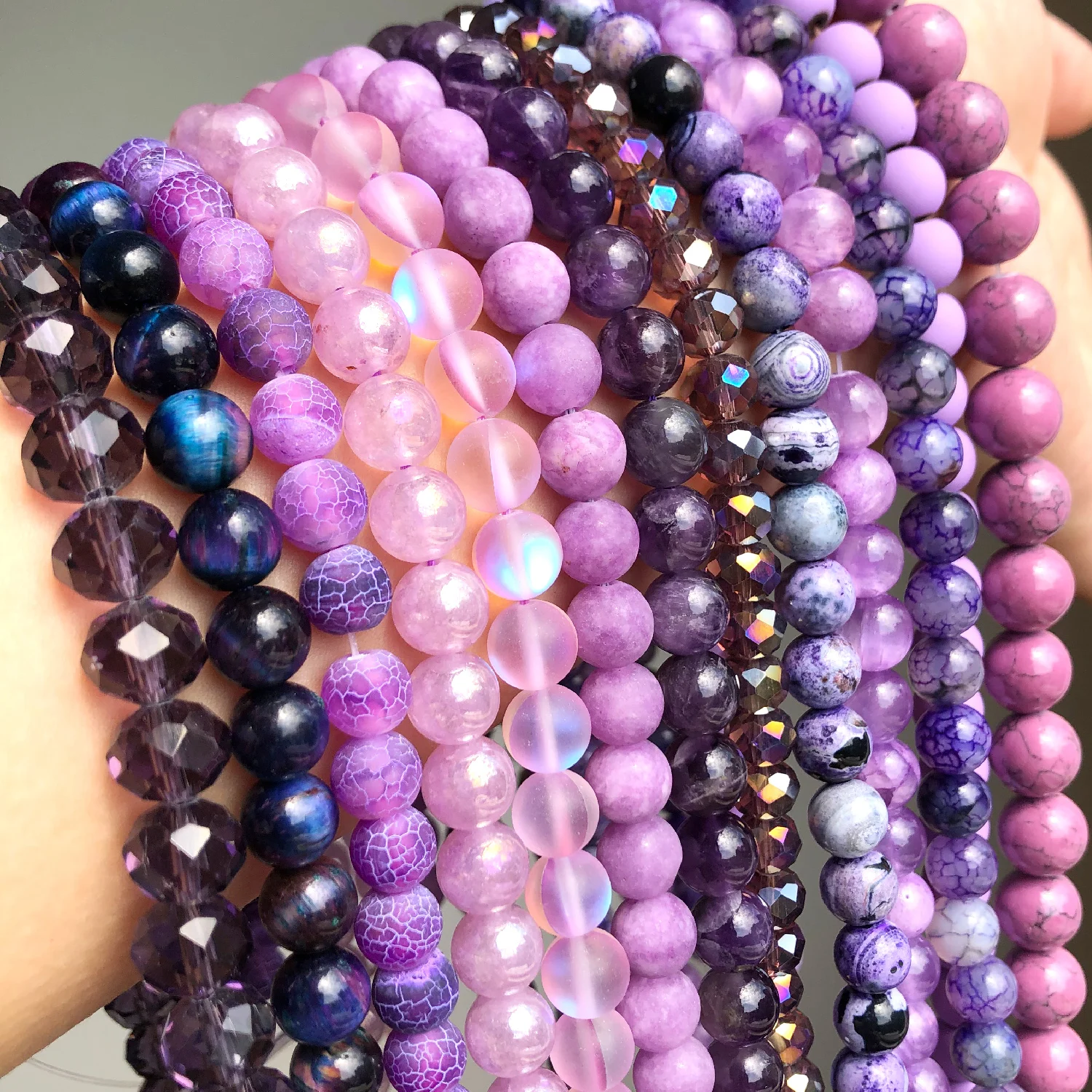 Натуральный фиолетовый минеральный камень Бусины нефрит халцедон Кристалл Аметист Агаты яшма гематит бусины для изготовления ювелирных изделий браслет