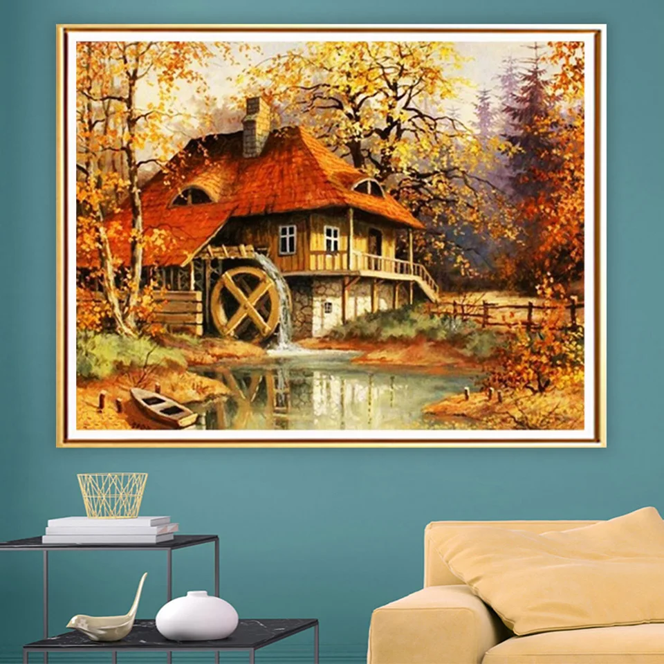 5D алмазная живопись, пейзаж, осень, вышивка крестиком, набор сдела...