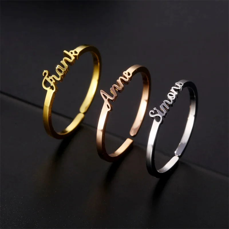 Кольца женские регулируемые из нержавеющей стали, с именем на заказ