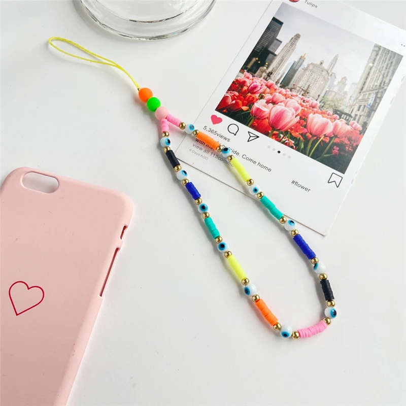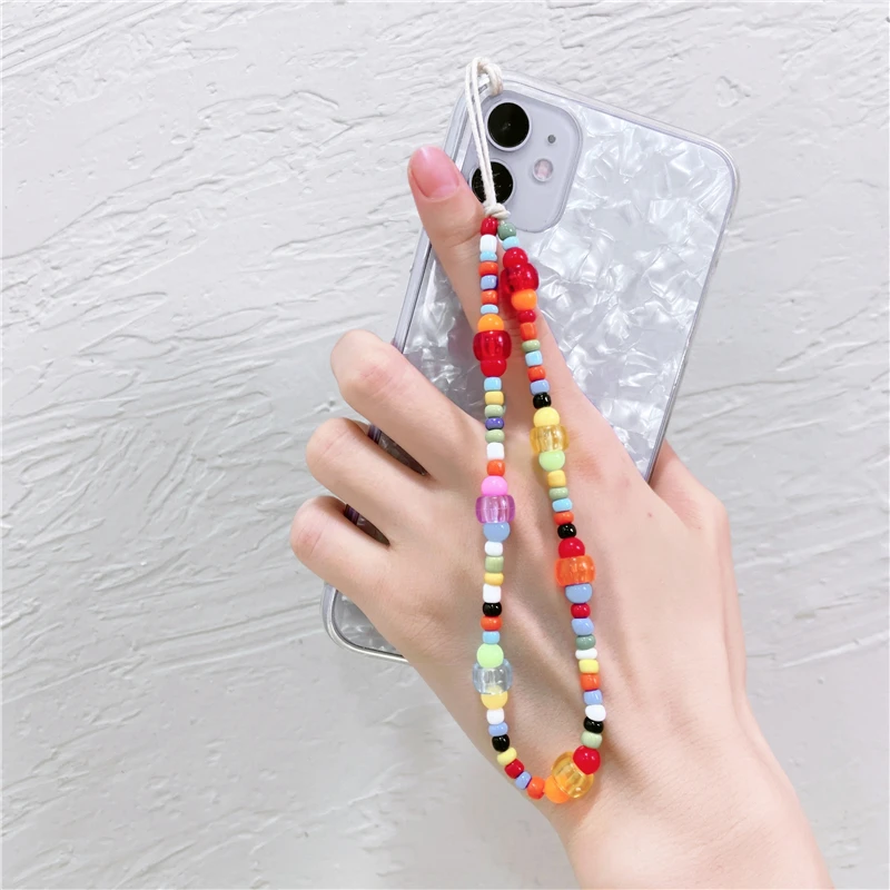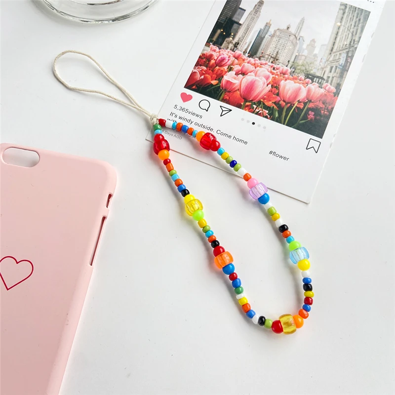 Цепочка Женская, цветная, из акрилового шнура, с улыбающимся бисером, ручной работы, 2021, мобильный телефон