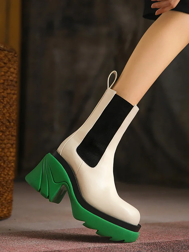 Женские ботинки челси DLEK, осенние женские ботинки на толстой подошве и высоком каблуке, качественная женская черная обувь, короткие ботильоны на платформе