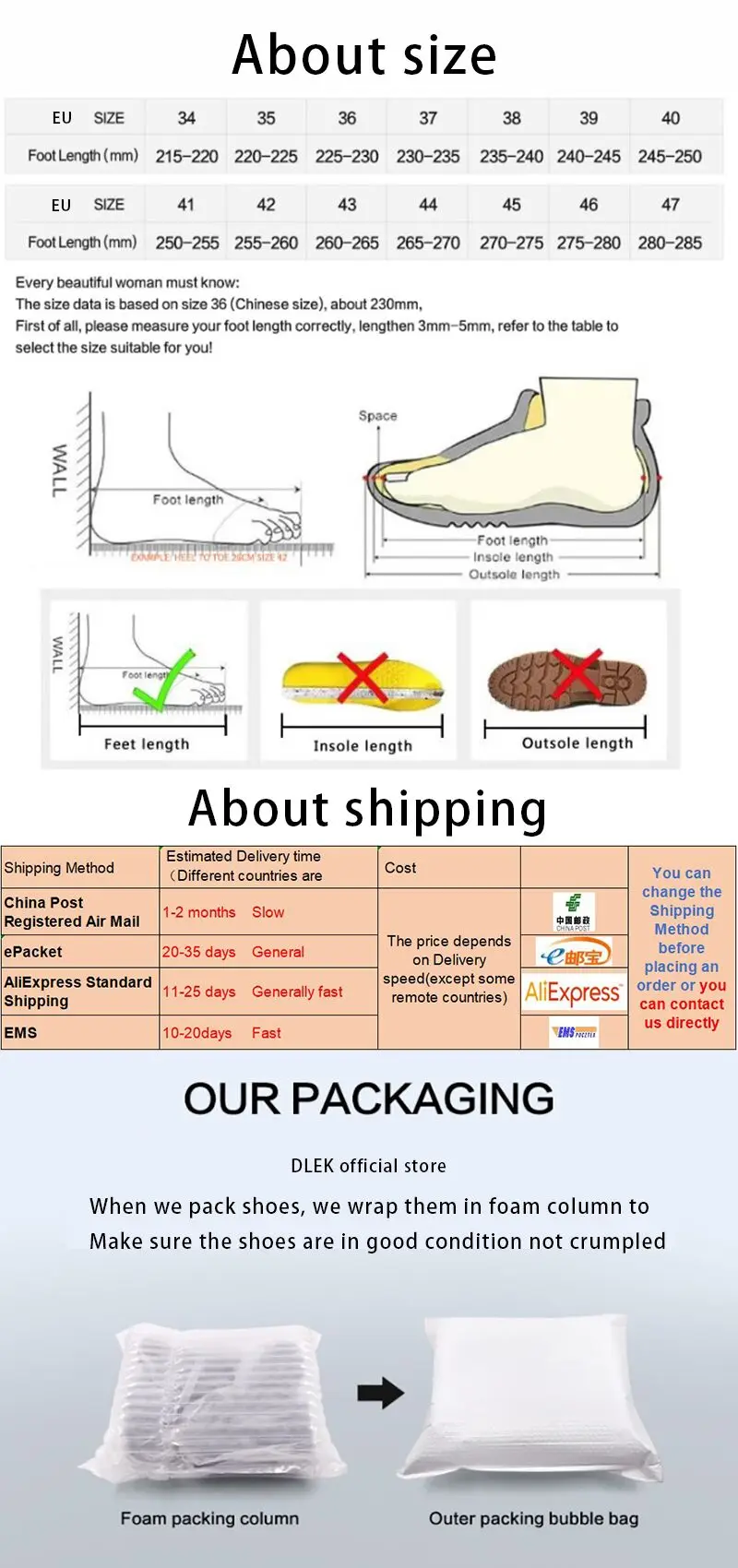 Если длина вашей стопы25-25,5 см, Пожалуйста, выберитеАмериканский размер 9 или 9,5=Европейский размер 40/41