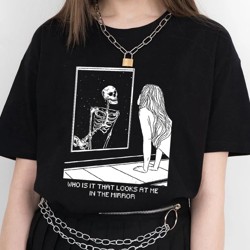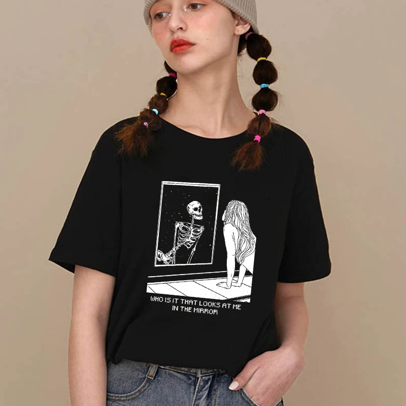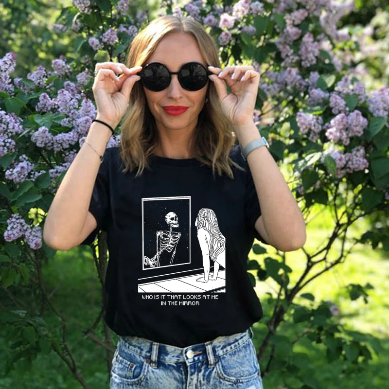 Dreamchase-JF, это то, что выглядит у меня в зеркале с принтом в виде скелета Футболка женская Изделие из хлопка с короткими рукавами забавные цитаты футболка