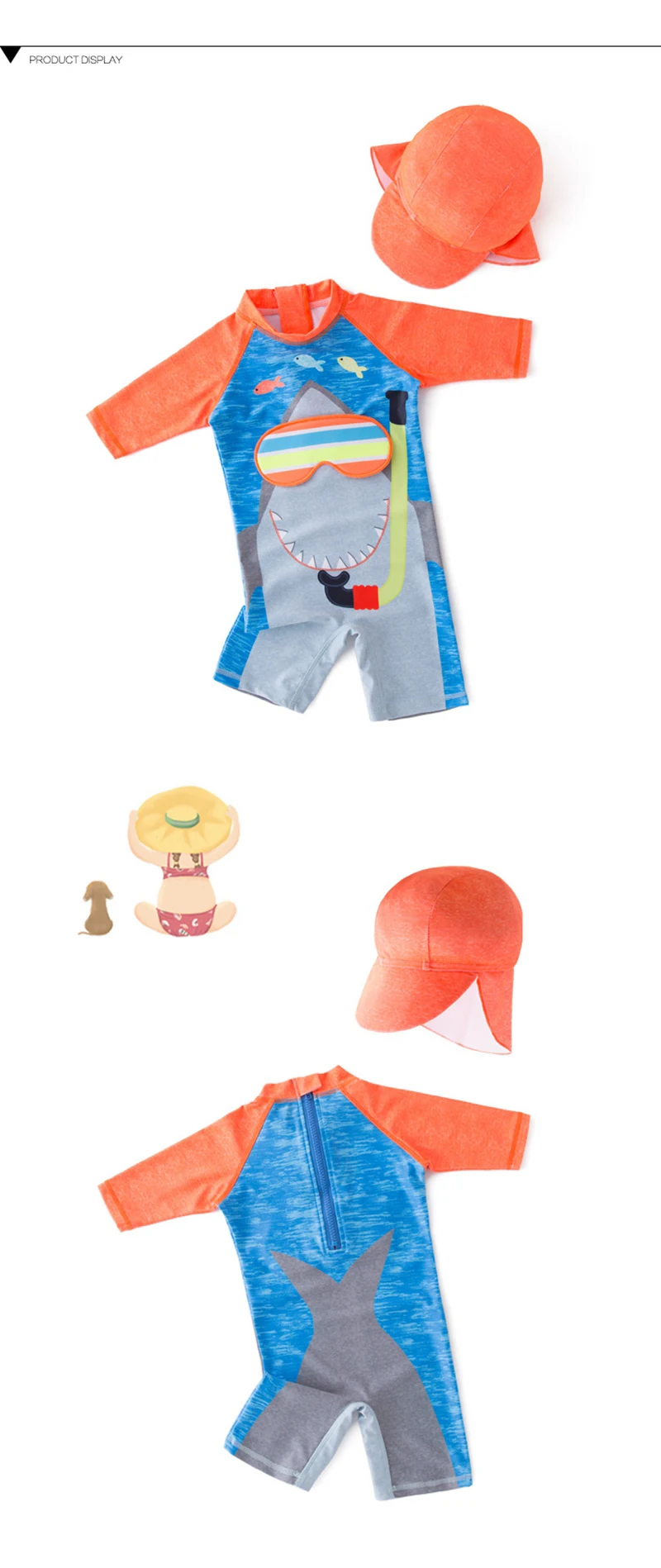 Купальник для мальчиков, с шапочкой, костюм для серфинга, купальный костюм для мальчиков с акулой, Солнцезащитная пляжная одежда, купальный костюм для детей, Младенцы Малыши Дети