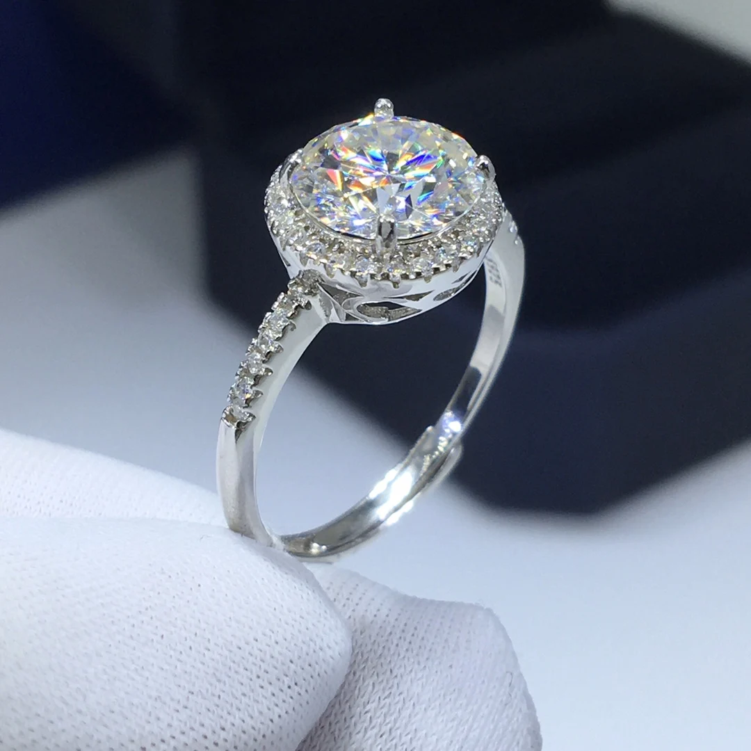 Кольцо женское из серебра 925 пробы, с муассанитом 1-2 карата
