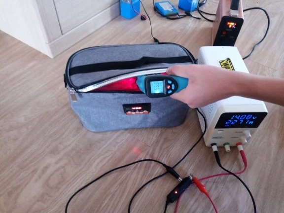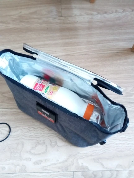Приехал быстро, сумка сделана из крепкого материала. Жаль, что нет ремня для переноски, но есть для него крепления. Для 14v потребляет около 2.2 A. При 4,7v - 0.8A - можно запитать и от повербанка, но прогреется до 40º. От блока питания прогревался пустой с 22º до 40 за 5 минут, до 60 за 9 минут. Греет дно и задняя стенка. Отлично, мне нравится. 4 литровые бутылки молока помещаются в эту сумку.