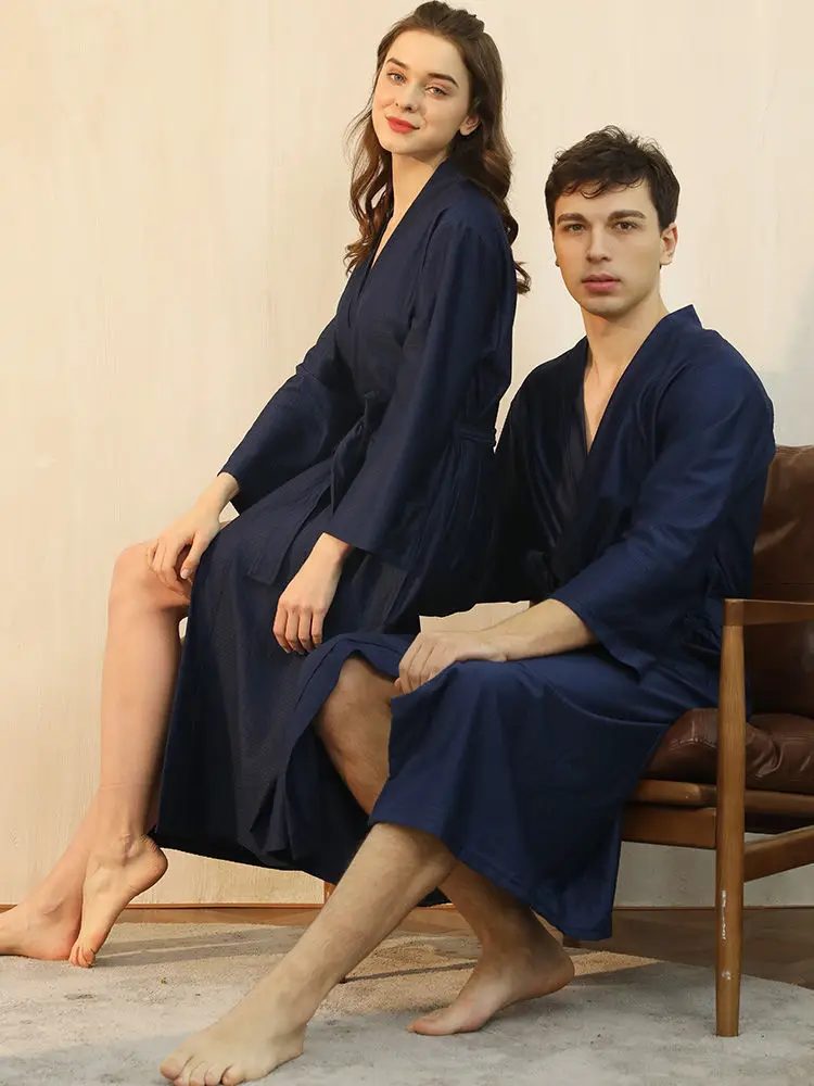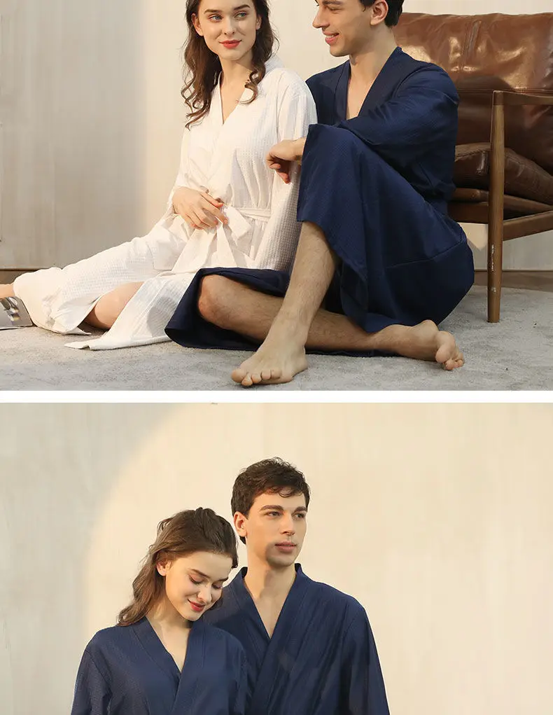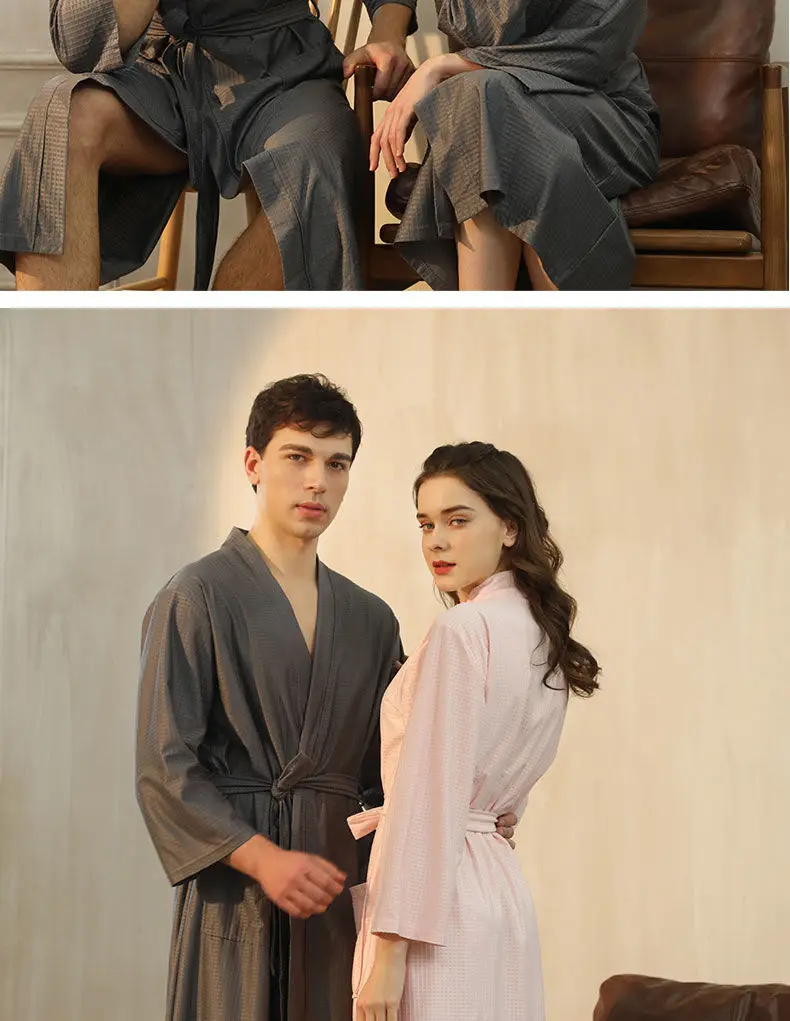 100%, вязаный банный халат с вафельным рисунком, сексуальный халат-кимоно, летняя одежда для мужчин и женщин, халат для пар, горячая банная одежда, Ночная одежда