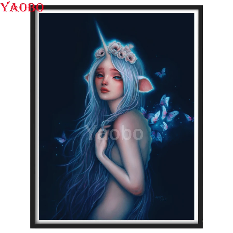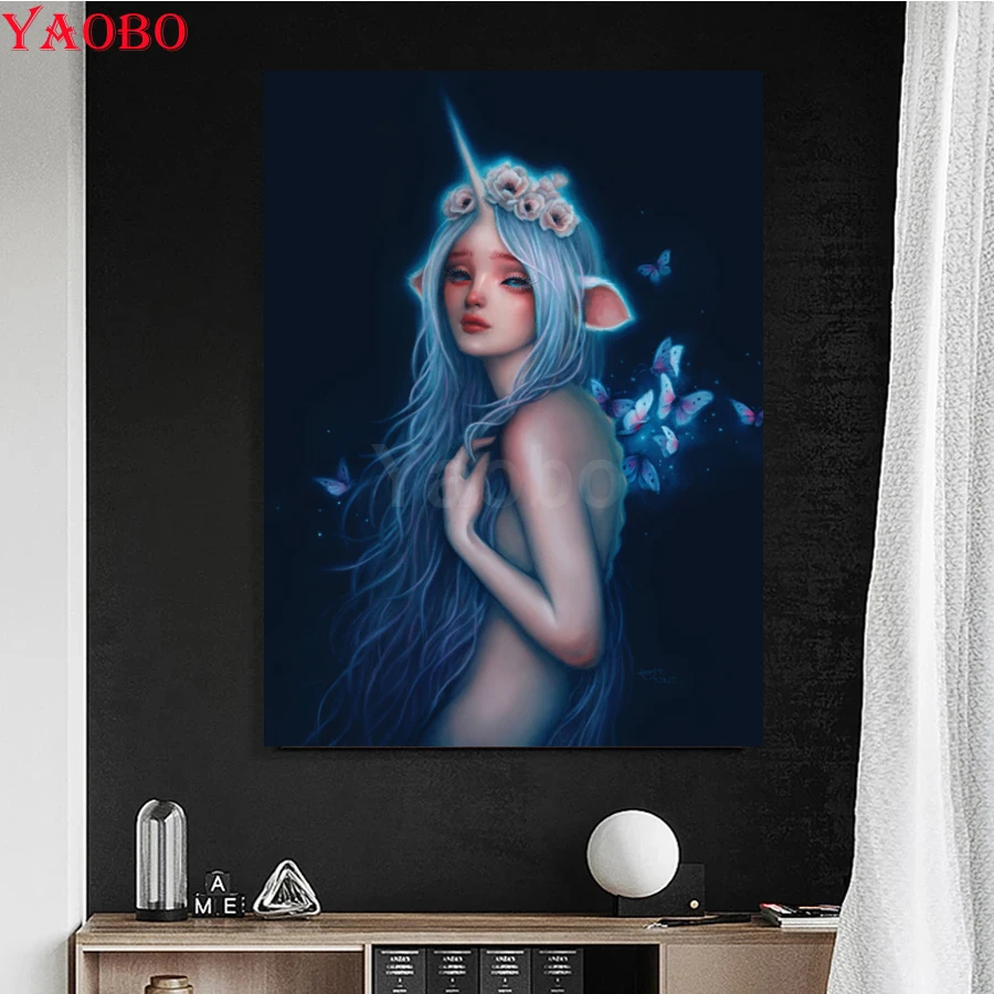 Алмазная 5D картина сделай сам с мультяшным единорогом эльфом девушкой, полное круглое сверло, фотография, подарок, наборы для вышивки крестиком, подарок