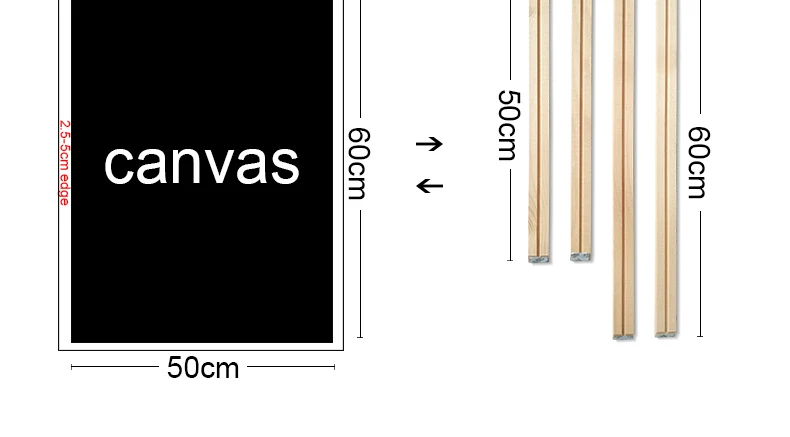 (Пожалуйста, убедитесь, что ваш картина имеет дополнительный вес 2,5 см, то есть размер брезентового должно быть не менее больше, чем размер 5 см деревянный каркас)