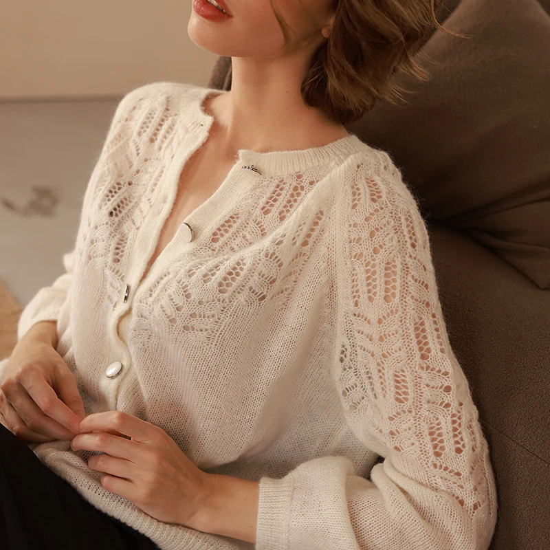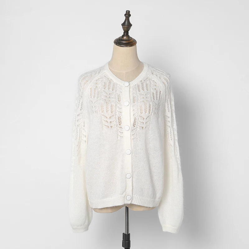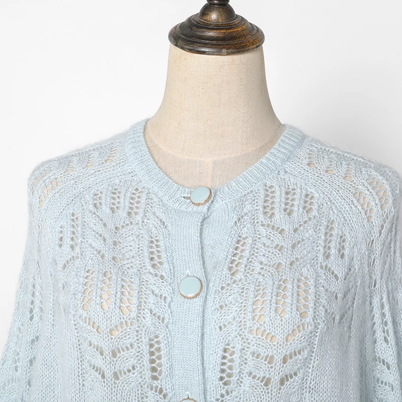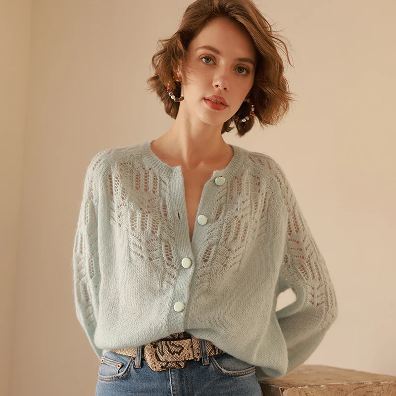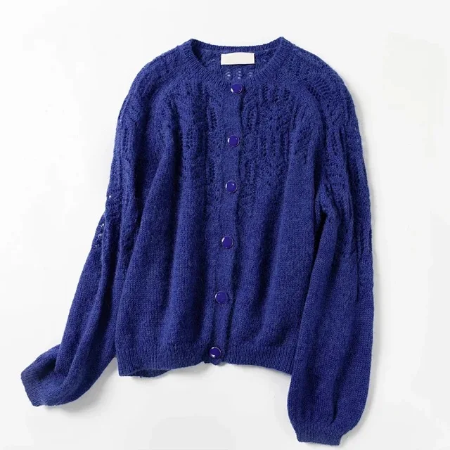 Женский шерстяной вязаный жилет, мохеровый элегантный кардиган с длинным рукавом и круглым вырезом, повседневный винтажный джемпер на осень и зиму, 2022