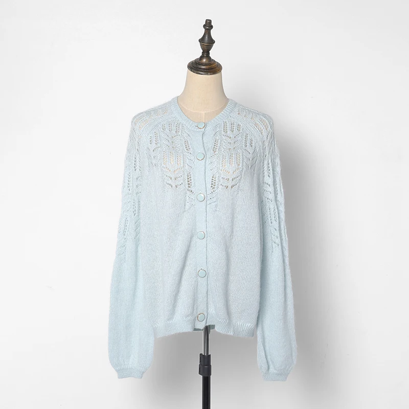 Женский свитер с длинным рукавом, голубой свитер из мохеровой шерст...