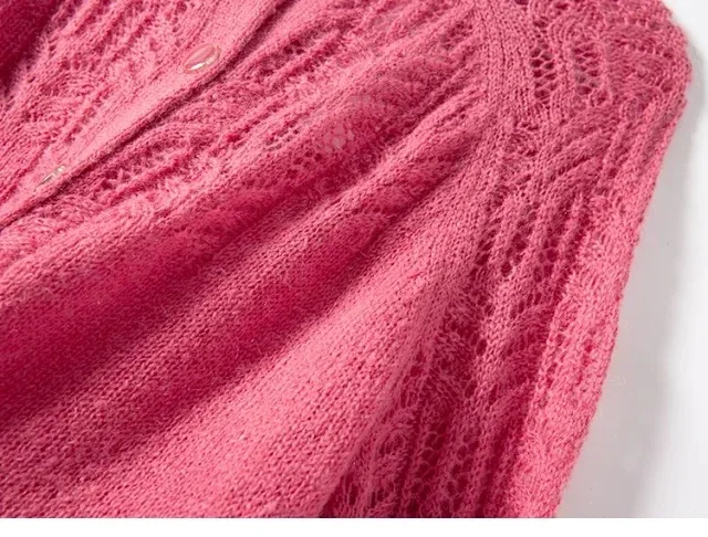 Женский трикотажный кардиган с круглым вырезом, длинным рукавом