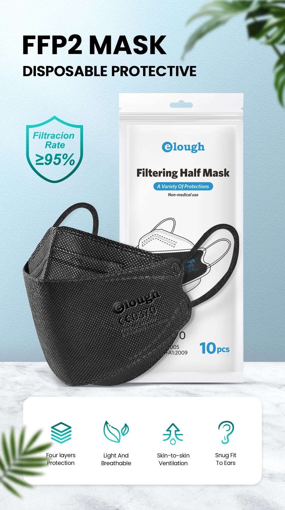 Маска Elough ffp2mask FFP2, маска KN95 для лица, маска для лица FPP2, гомологическая, сертифицированная, многоразовая