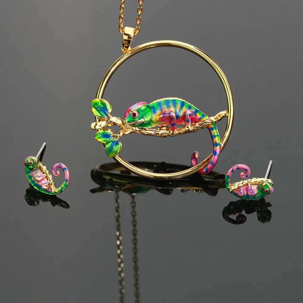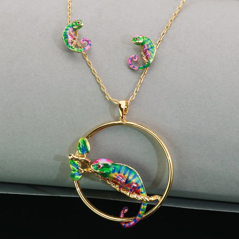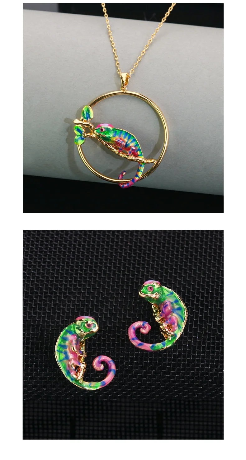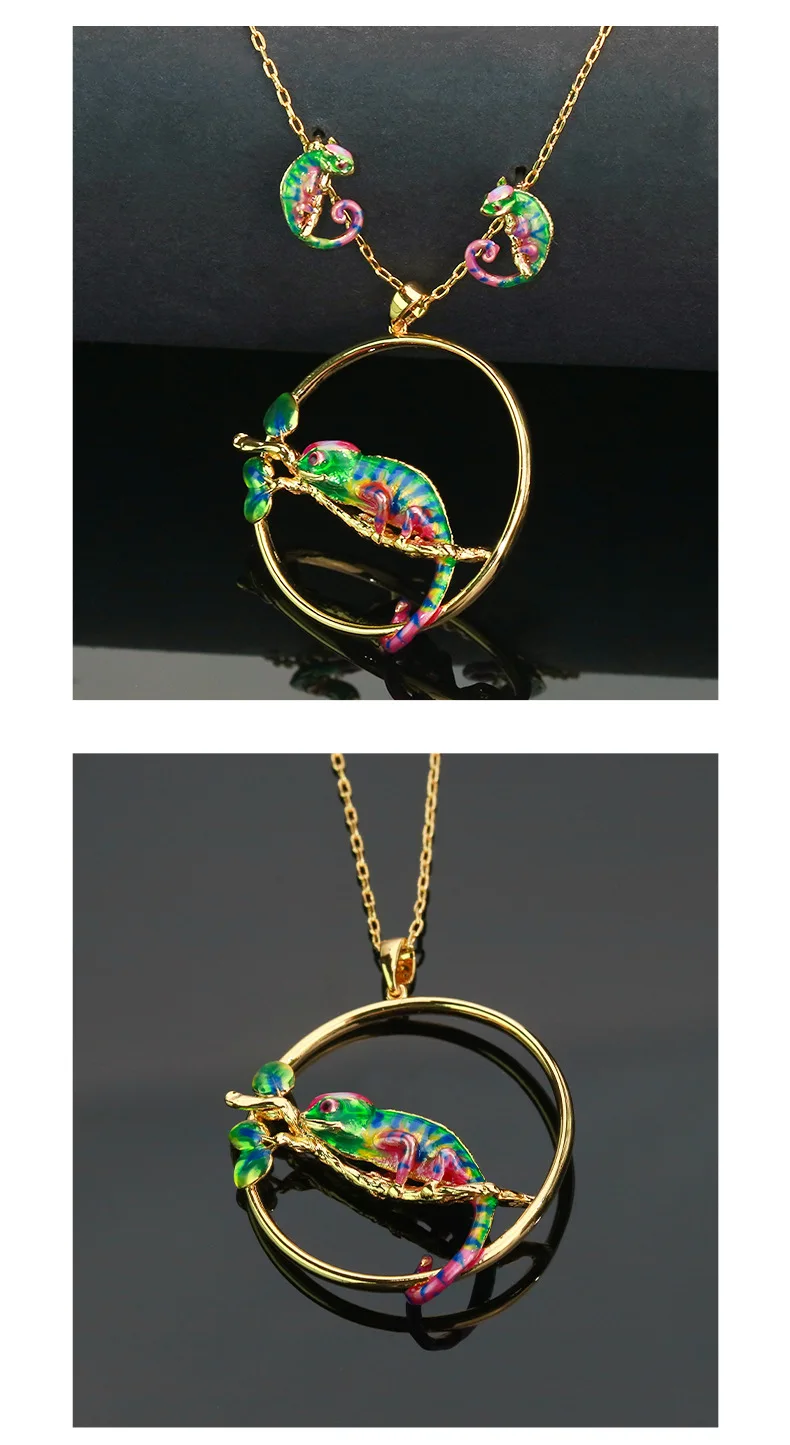 Ожерелье-Хамелеон для женщин, модные украшения, аксессуары, медная эмаль, глазурованная подвеска в виде животного, хороший подарок