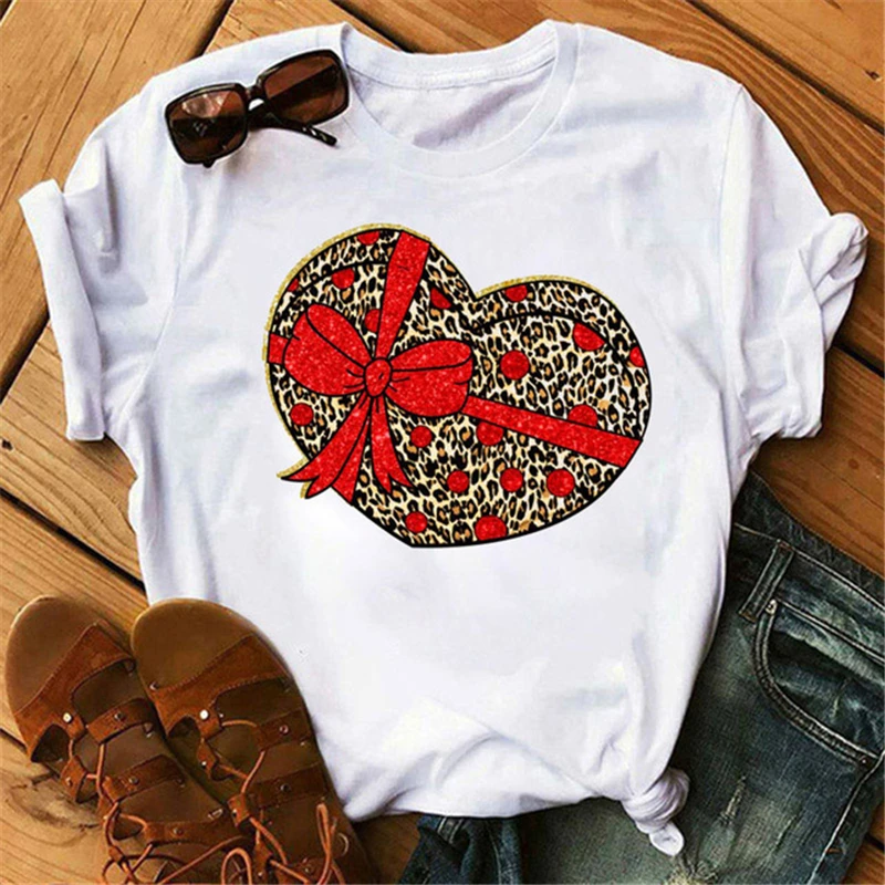 Принт красное сердце футболка, модная женская футболка с надписью L...