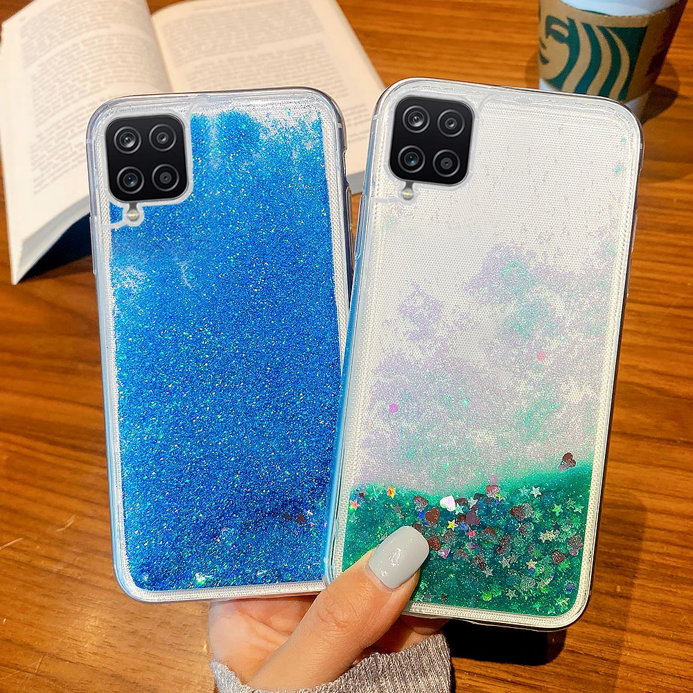 Защитный чехол для Samsung A12, чехлы с динамическими жидкими блест...