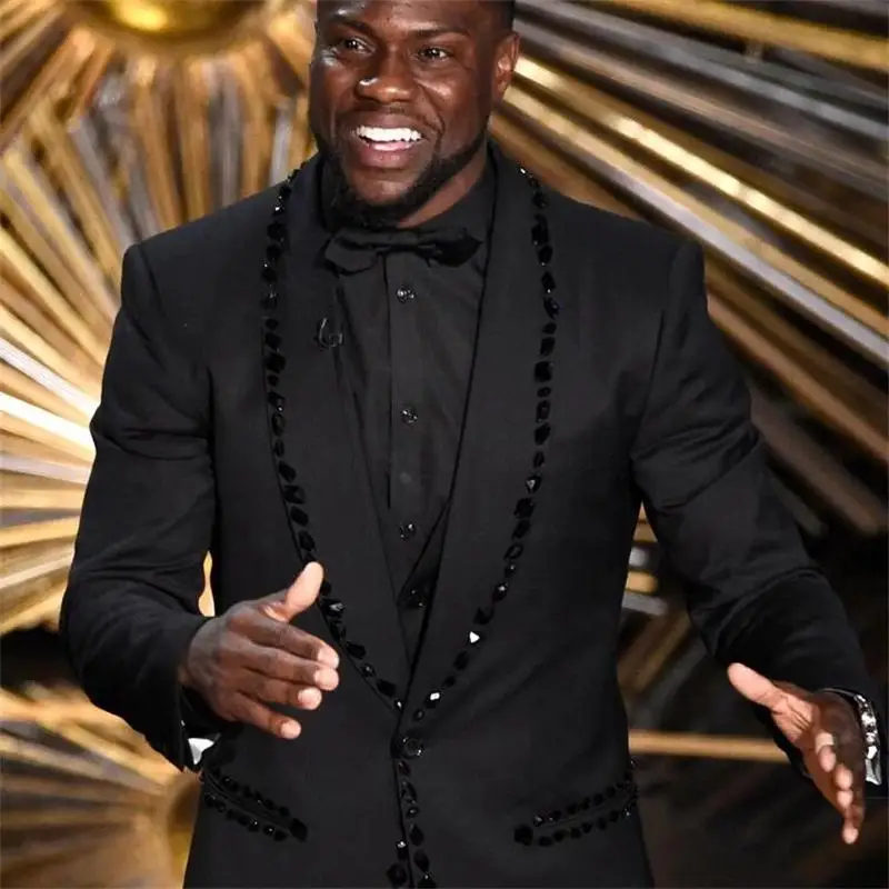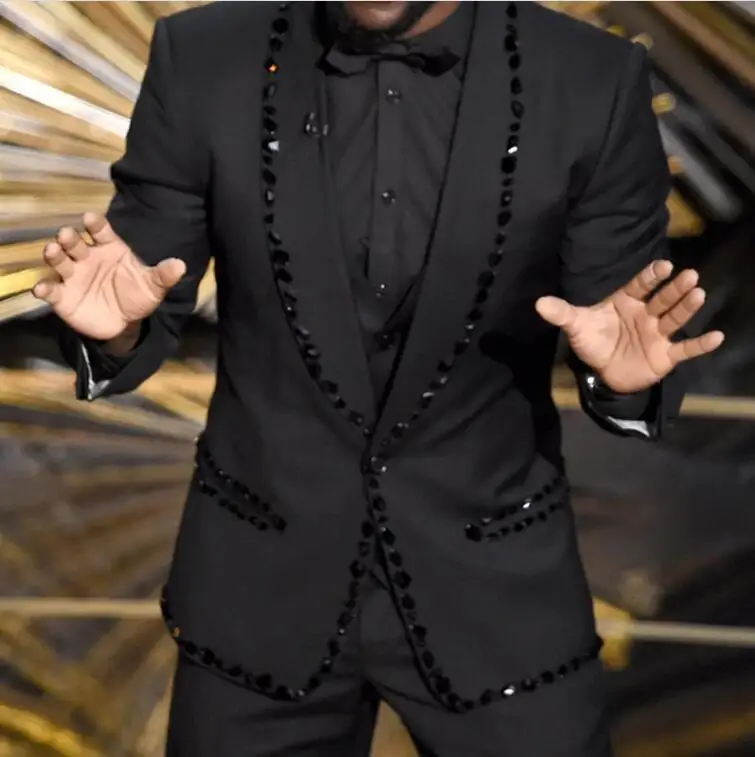 Роскошный Черный выпускные мужские свадебные костюмы Стразы Slim Fit Комплект из 3 предметов блейзера и штанов 2021 бисером; Сезон весна-осень в стиле смокинга жениха