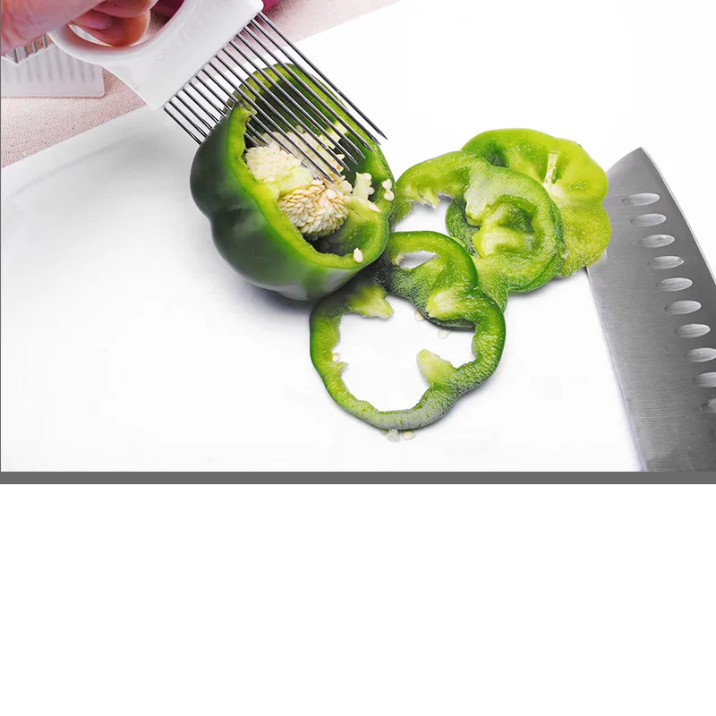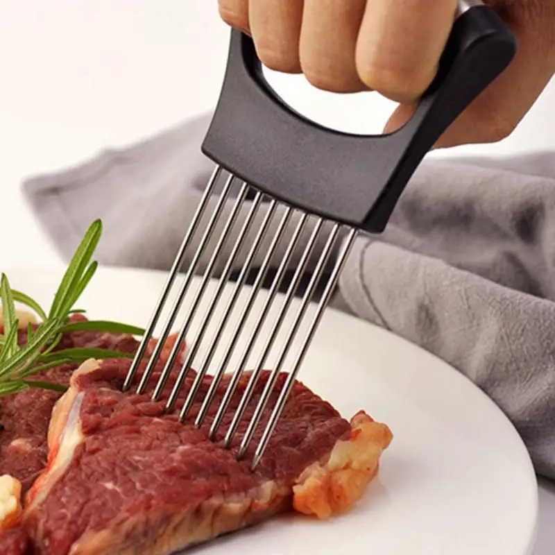 Слайсер для лука из нержавеющей стали, безопасная вилка для овощей,...