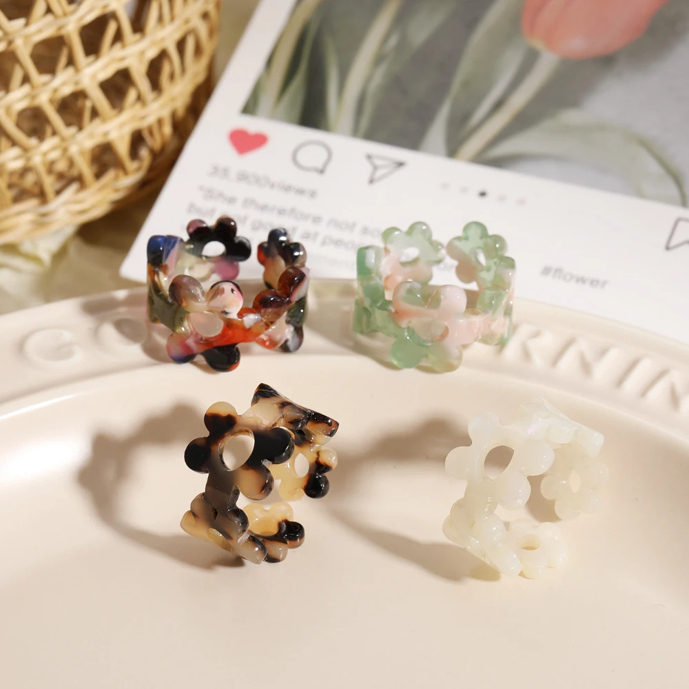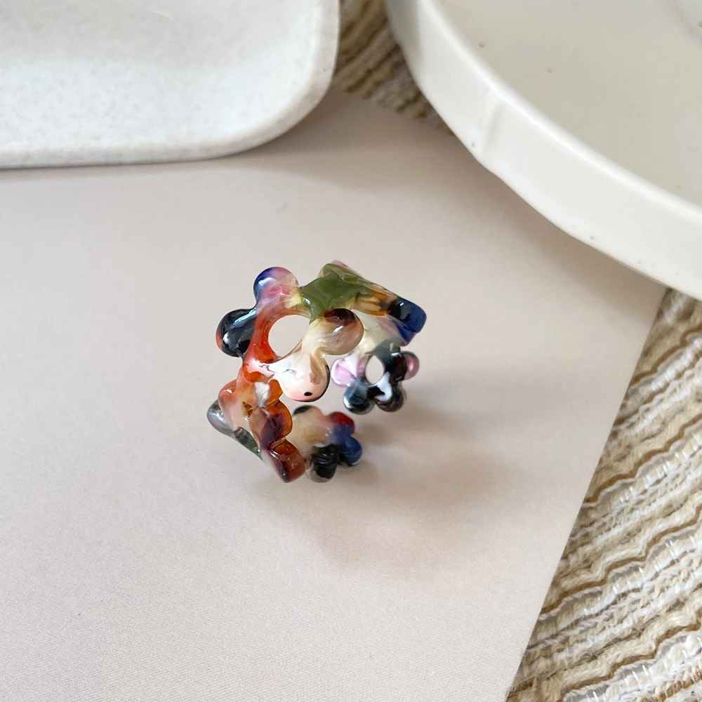 2021 новые винтажные красочные сливы смолы акриловые стразы нерегулярные квадратный набор колец для женщин, ювелирные изделия оптовая торговля подарки перемещения