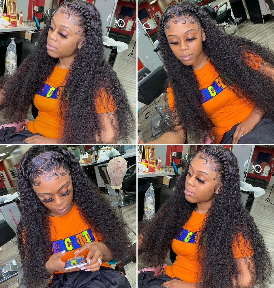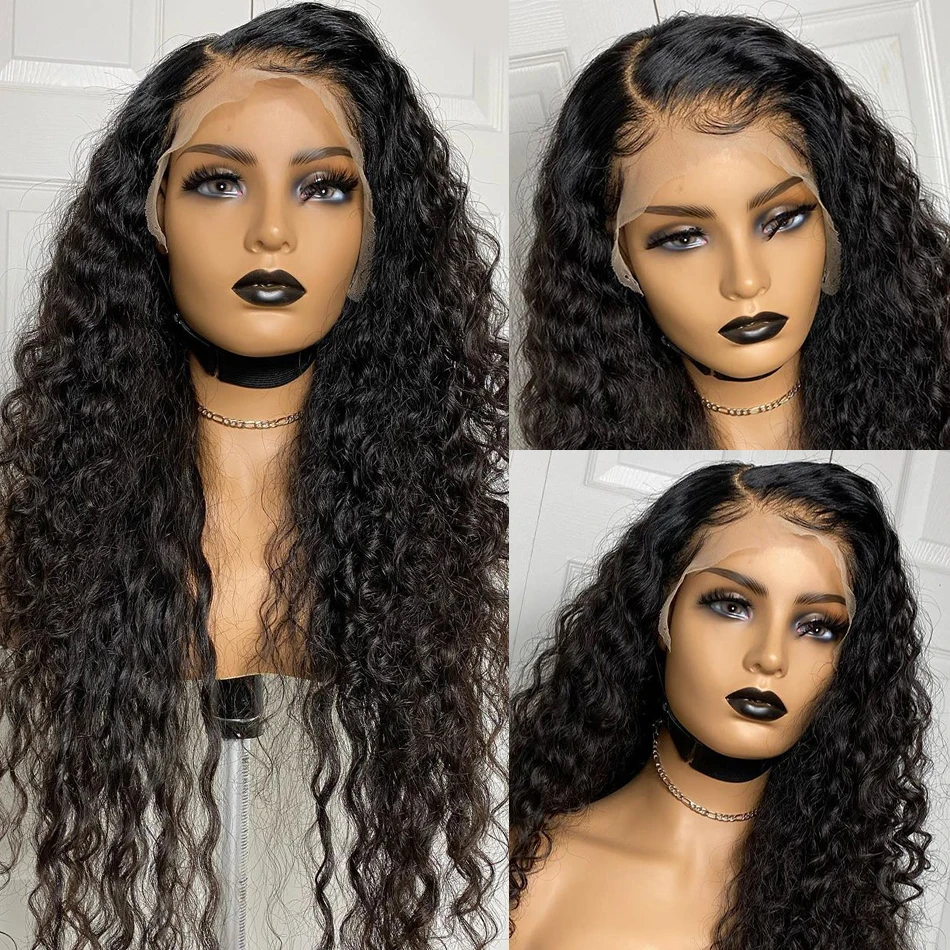 Парик с глубокими вьющимися кружевами спереди, парик высокой плотно...