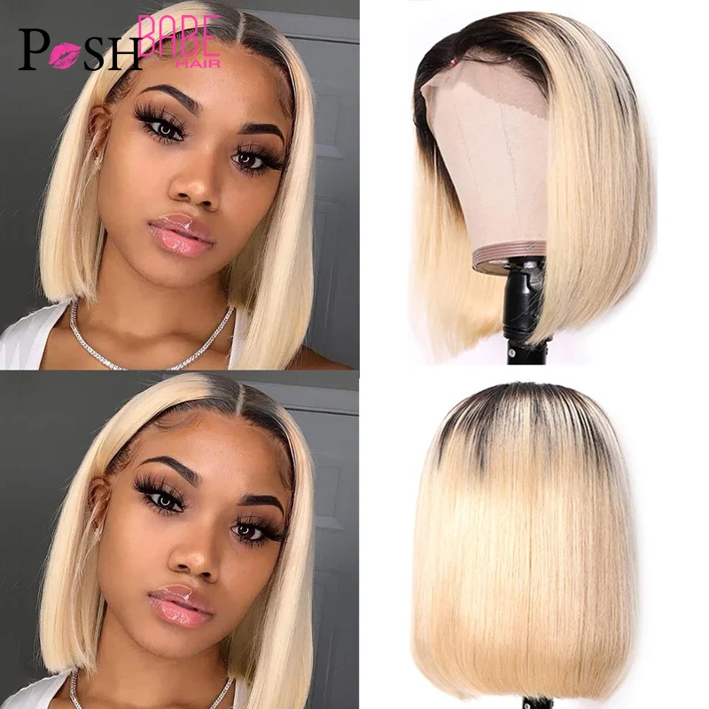 Парик 1B 613 светлый на шнуровке с эффектом омбре, короткие парики боб, парики 613 13x4, парик на шнуровке спереди, предварительно выщипанные парики Remy, бразильские волосы для женщин