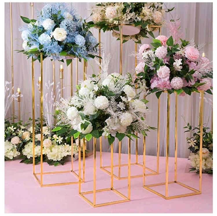 Новинка свадебный центральный элемент позолоченный Геометрический Цветочный Стенд украшение для дома Блестящий металлический Железный прямоугольный квадратный каркас фон