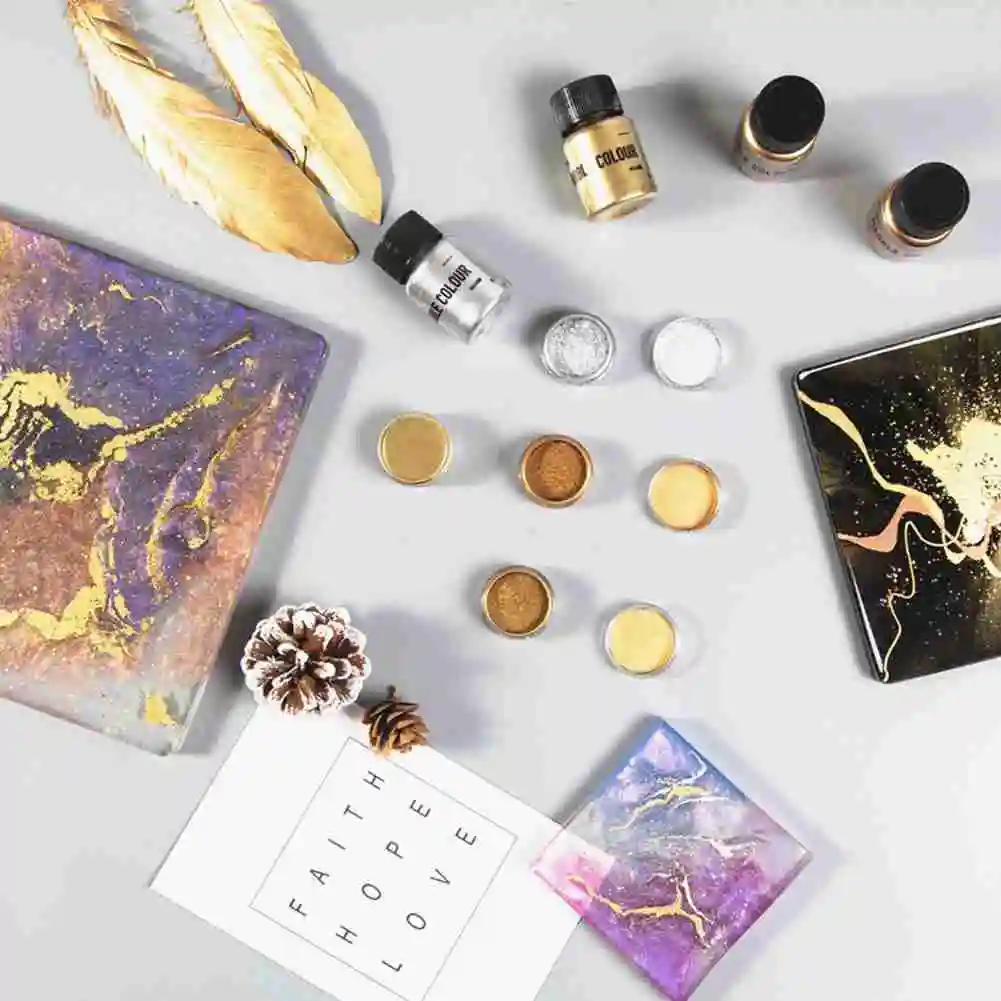Пигменты из металлической смолы, мерцающие, золотого и серебряного цветов, перламутровый пигмент, краситель для УФ-смолы, эпоксидные украшения