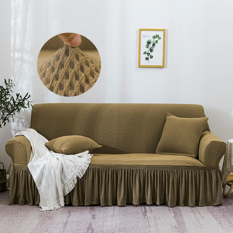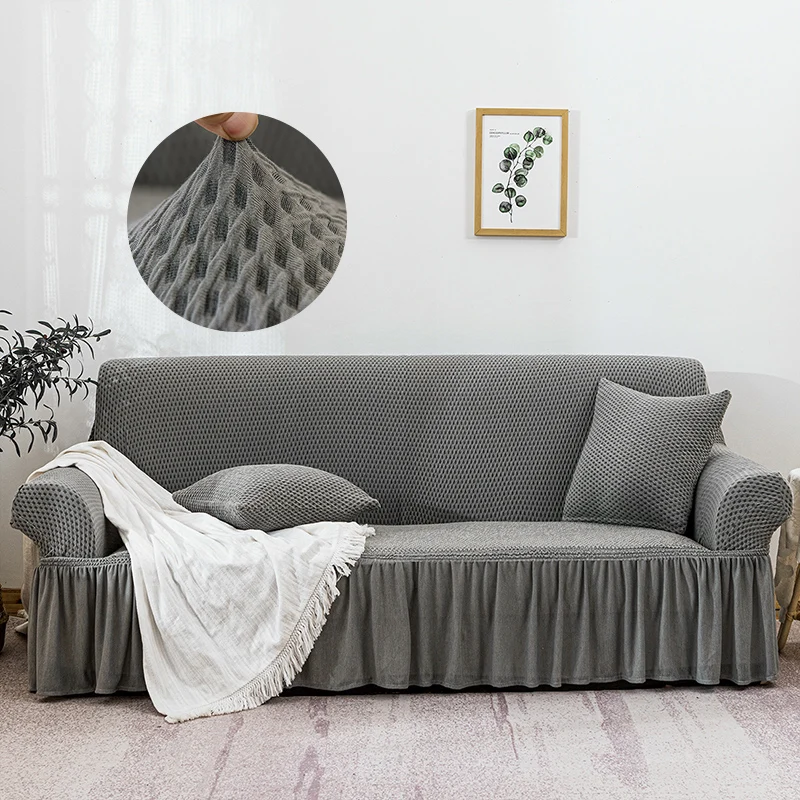 Клетчатый эластичный чехол для дивана, Жаккардовая юбка, дышащий чехол для дивана, домашнее кресло, полноразмерные Чехлы для дивана на 1234 места