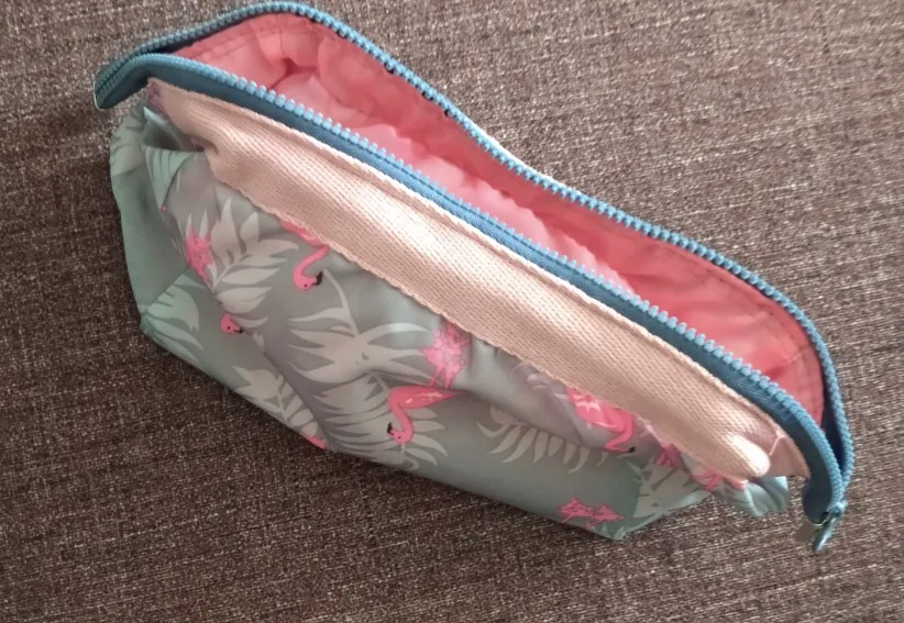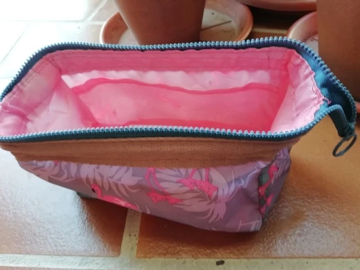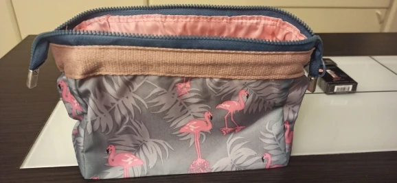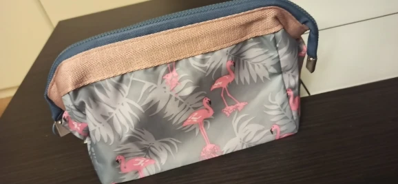 доставка 3 тижні. косметичка не зовсім співпадає з фото продавця. верхня тканина типу плащовки, поліестер. подкладка взагалі якихось диких кольорів. все з поліестеру. на фото продавця схоже на ситець абощо. очікувала кращого. біля молнії вставлений жорсткий каркас, але він гуляє у різні боки, через це важко відкрити так, щоб отвір був симетричним. нормально за свої гроші, але отримала "очікування-реальність"