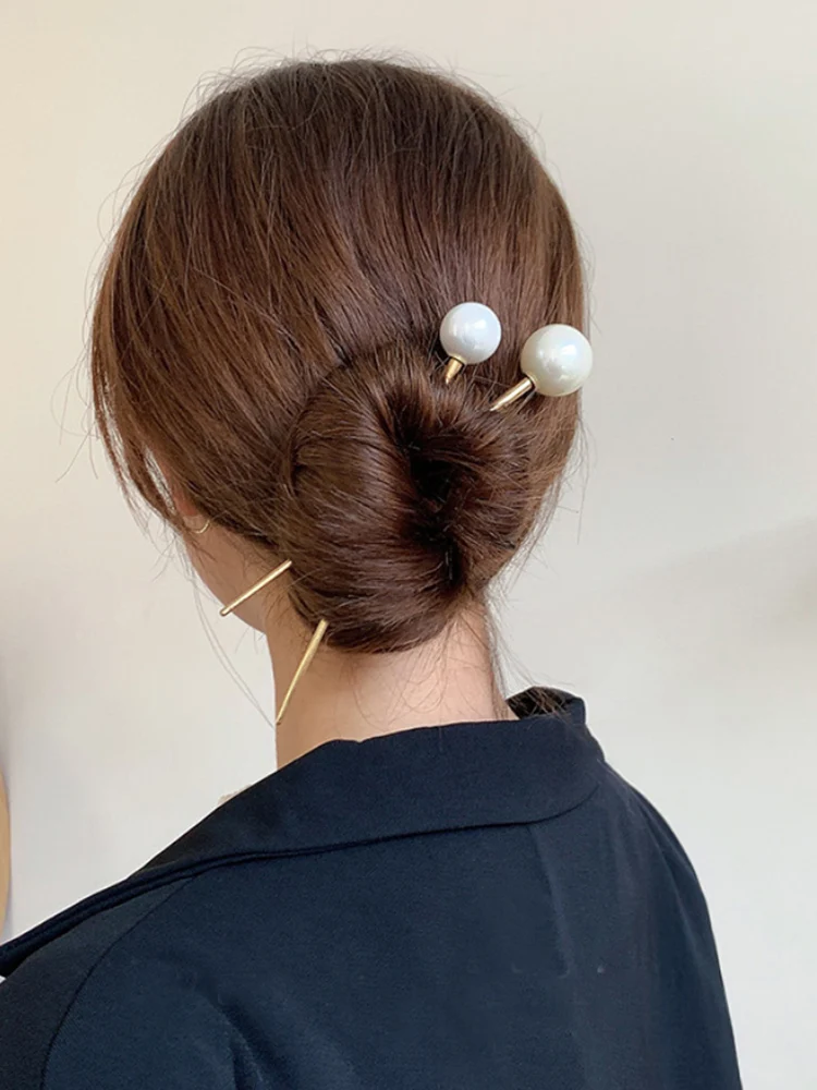 Заколки для волос женские, металлические, геометрические, с жемчужн...