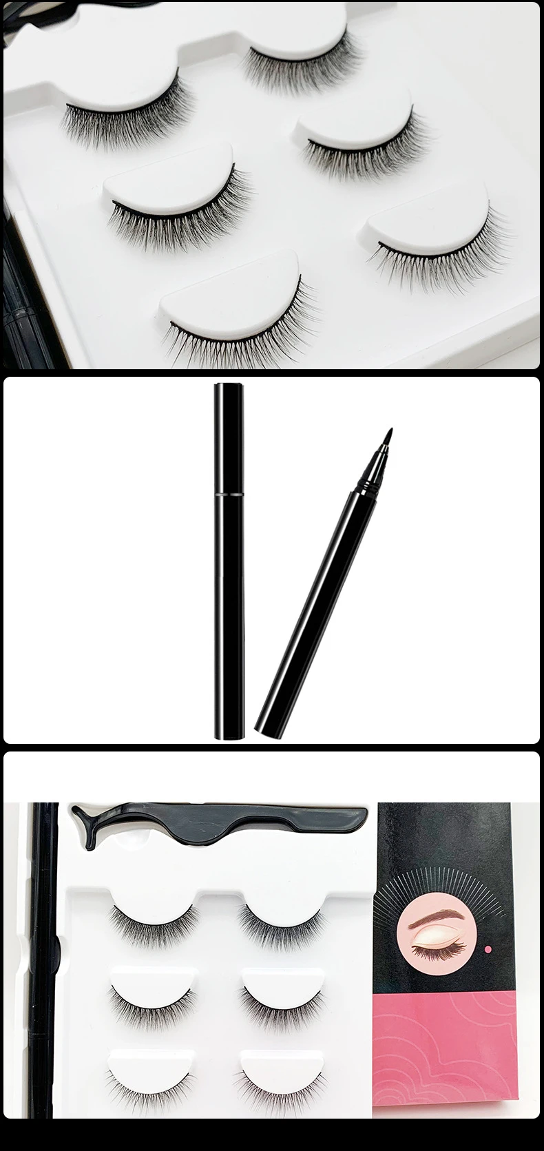 Размер3 pair false eyelashes ,eyelash tweezers,Magnetic Eyeliner