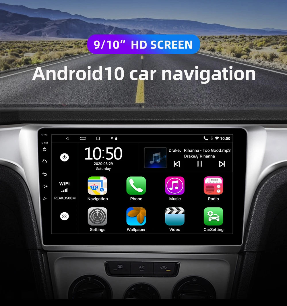 REAKOSOUND 2Din 9 ''Автомобильный видео WIFI GPS Andriod 10,0 DSP RDS мультимедийный плеер для VW универсальный Nissan Toyota внешний Carplay
