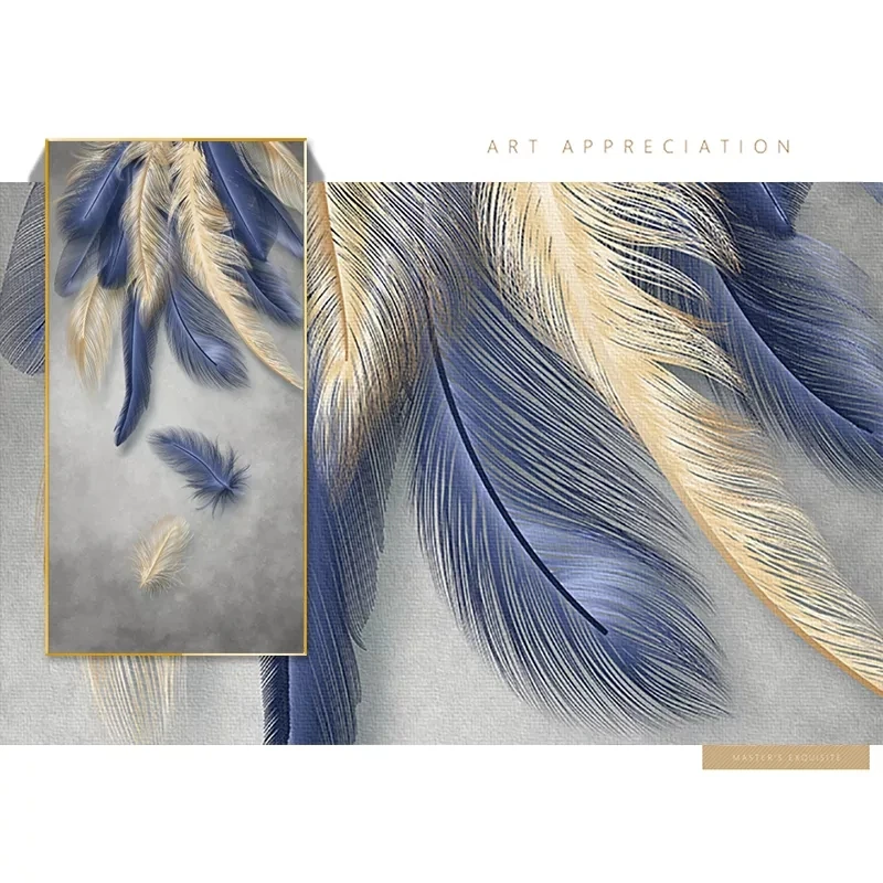Абстрактный большой синий плакат с золотой рыбой, китайская Роскошн...