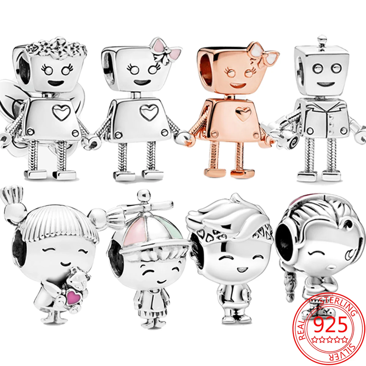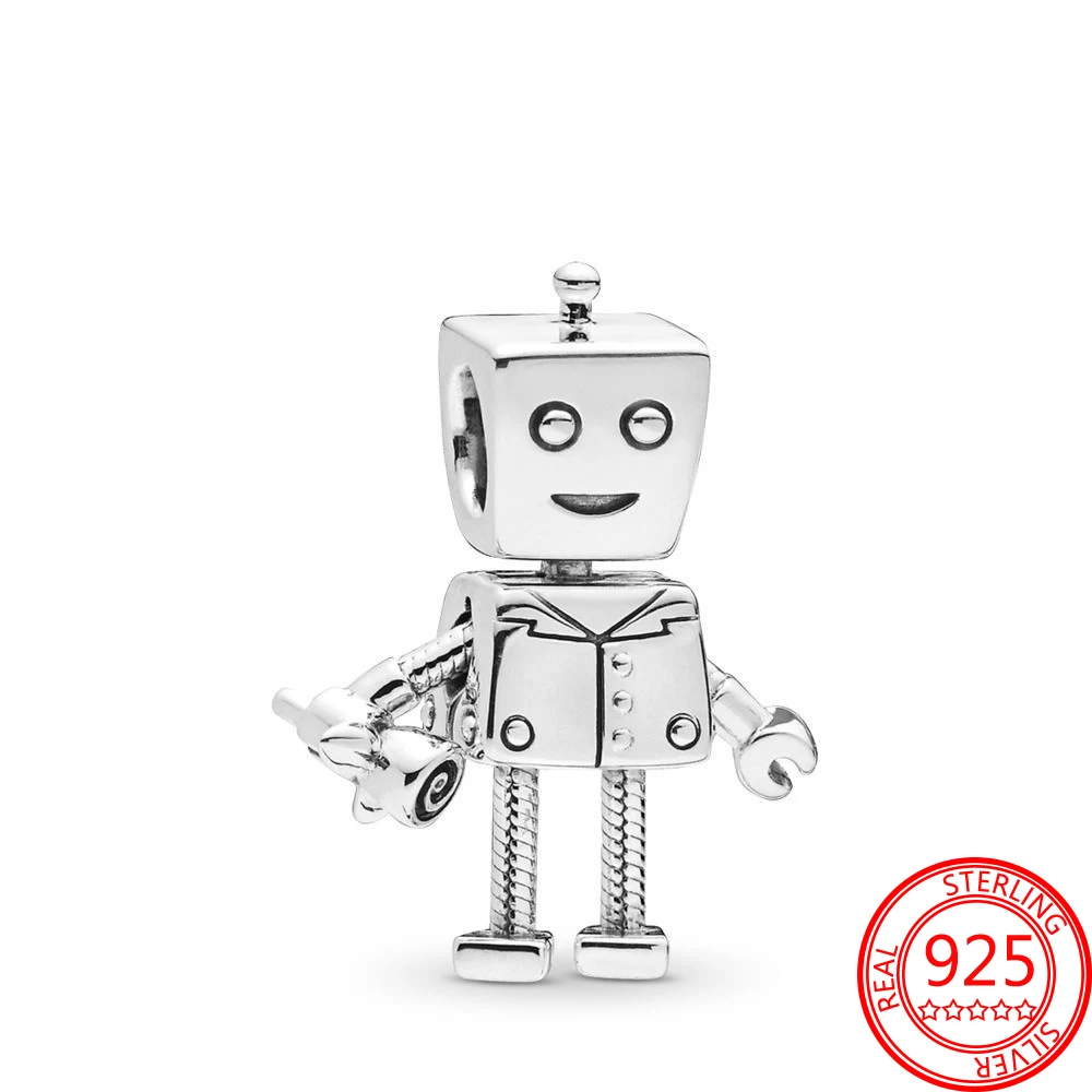 Шарм-подвеска Bella кулон робот из серебра 925 пробы с розовой эмал...