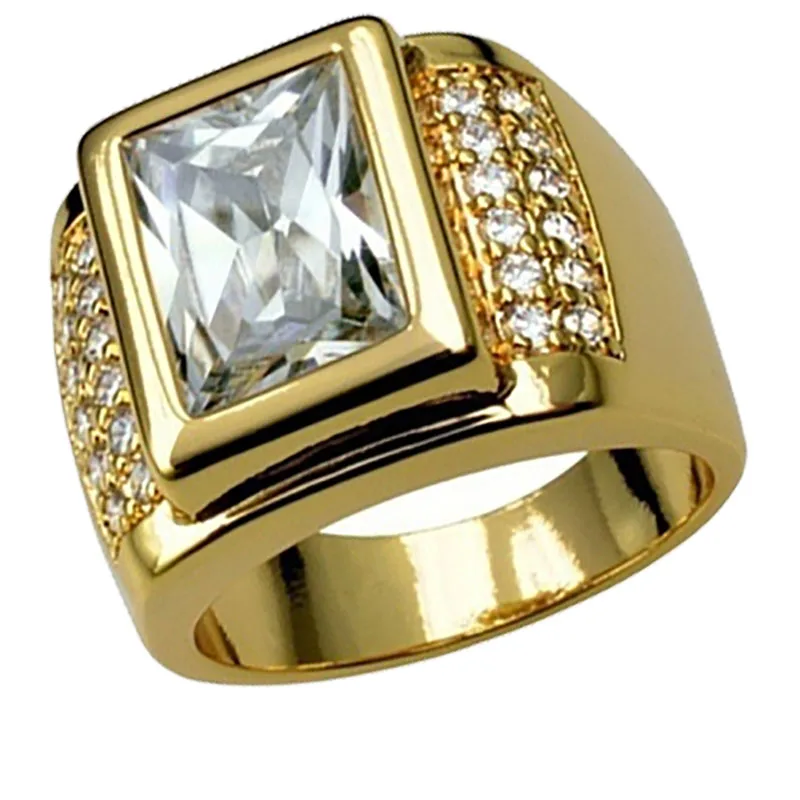 Punkboy модные популярные золотые Цвет широкая лицевая сторона инкрустированные квадратным кубическим с украшением в виде кристаллов из цинкового сплава, цинковый сплав, мужское кольцо для мужчин вечерние ювелирные изделия аксессуары